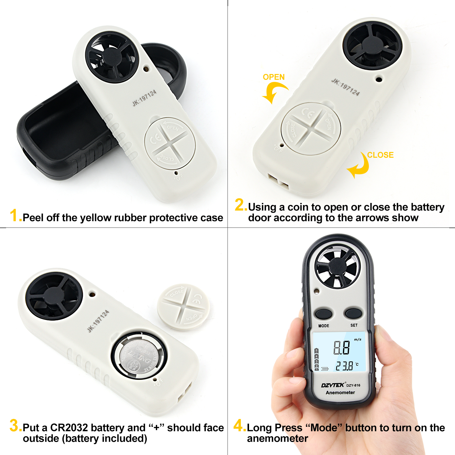 1. Устойчивый, устройство для измерения скорости ветра и высокая точность-диапазон скорости ветра: 0,3-30 м/с (макс. до 67mph), и точность скорости ветра: 0,1 цифр. Батарея входит в комплект.