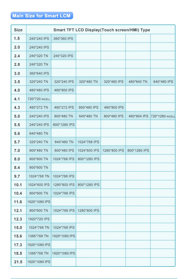 Product SpecificationDisplayItemParameterDescriptionColor16.7M(16777216)colors24 bit color 8R8G8B(A.A)51.8mm (W) ×86.4mm (H)480x800Resolution480x800Support 0°/90°/180°/270°rotated displayBacklightLED≥10000H(Continuous working with maximum brightness, time of brightness halves)