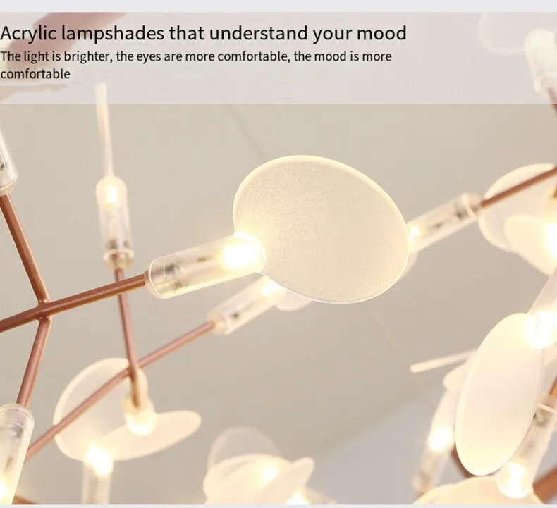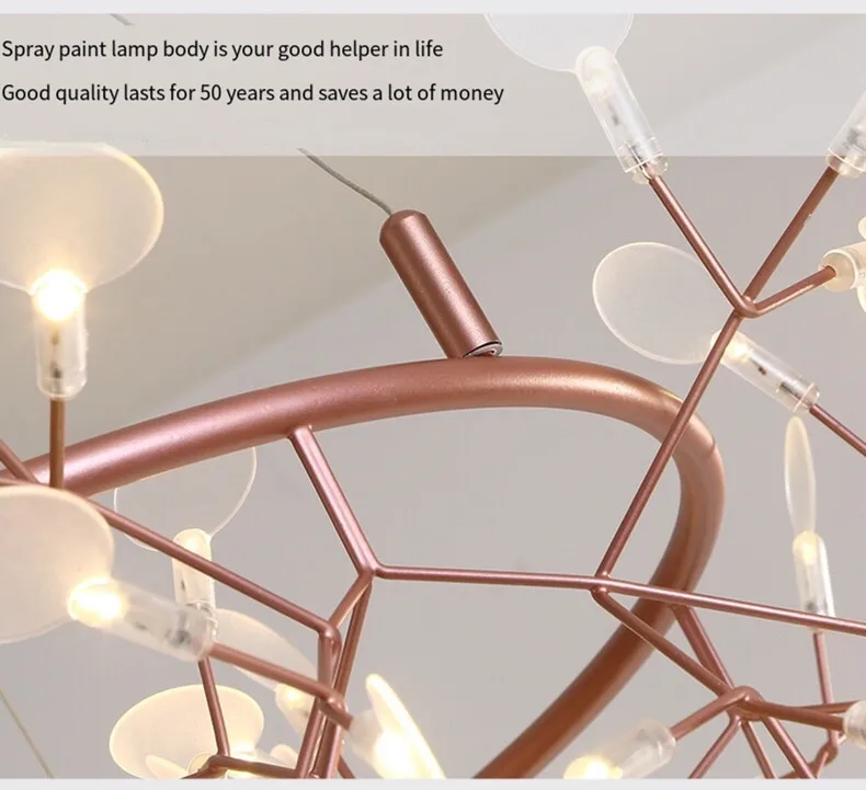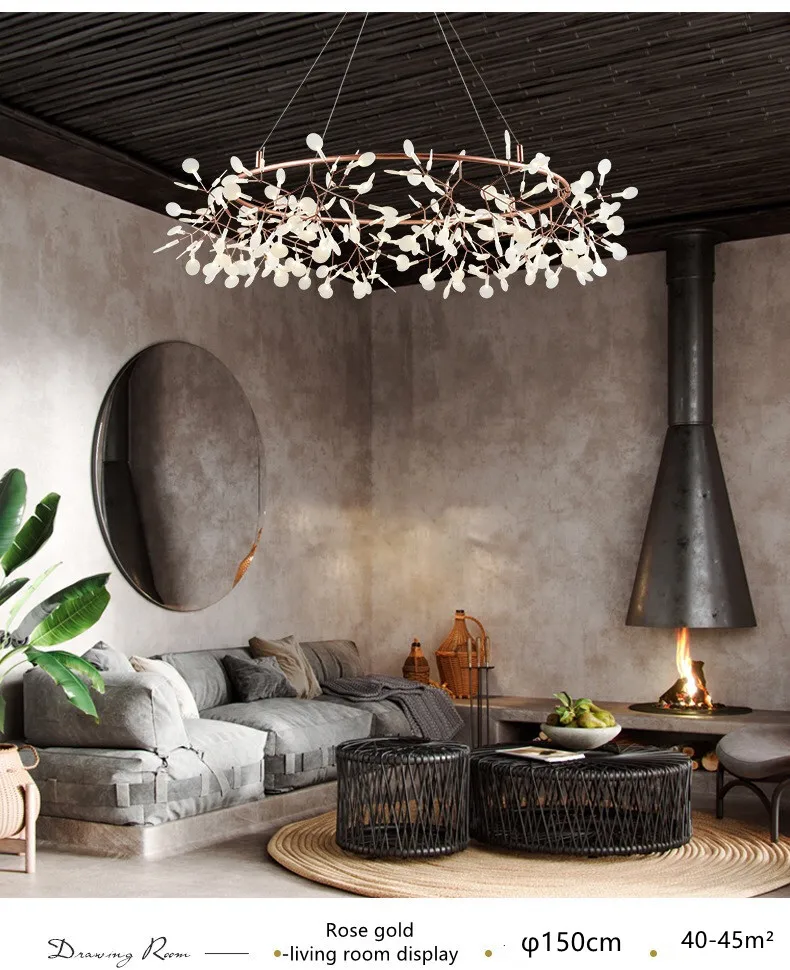 Nordic Hanging Living Room Chandelier Modern Kitchen Firefly Led Ceiling Pendant Lamp Branch Round Luxury Chandelier Lighting