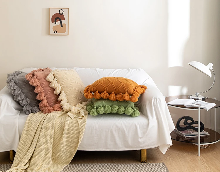 Нежная модель с волнистым узором, сочетающаяся с кисточками того же цвета