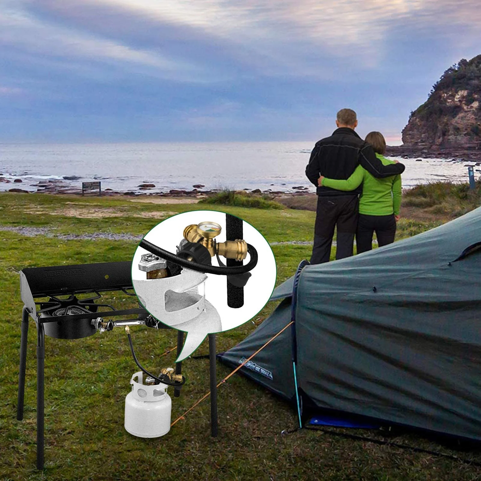 Совместим с соединением QCC1/Type1, подходит для газовых решеток, печей для кемпинга, настольного гриля, турецкой сковороды и других пропановых приборов.