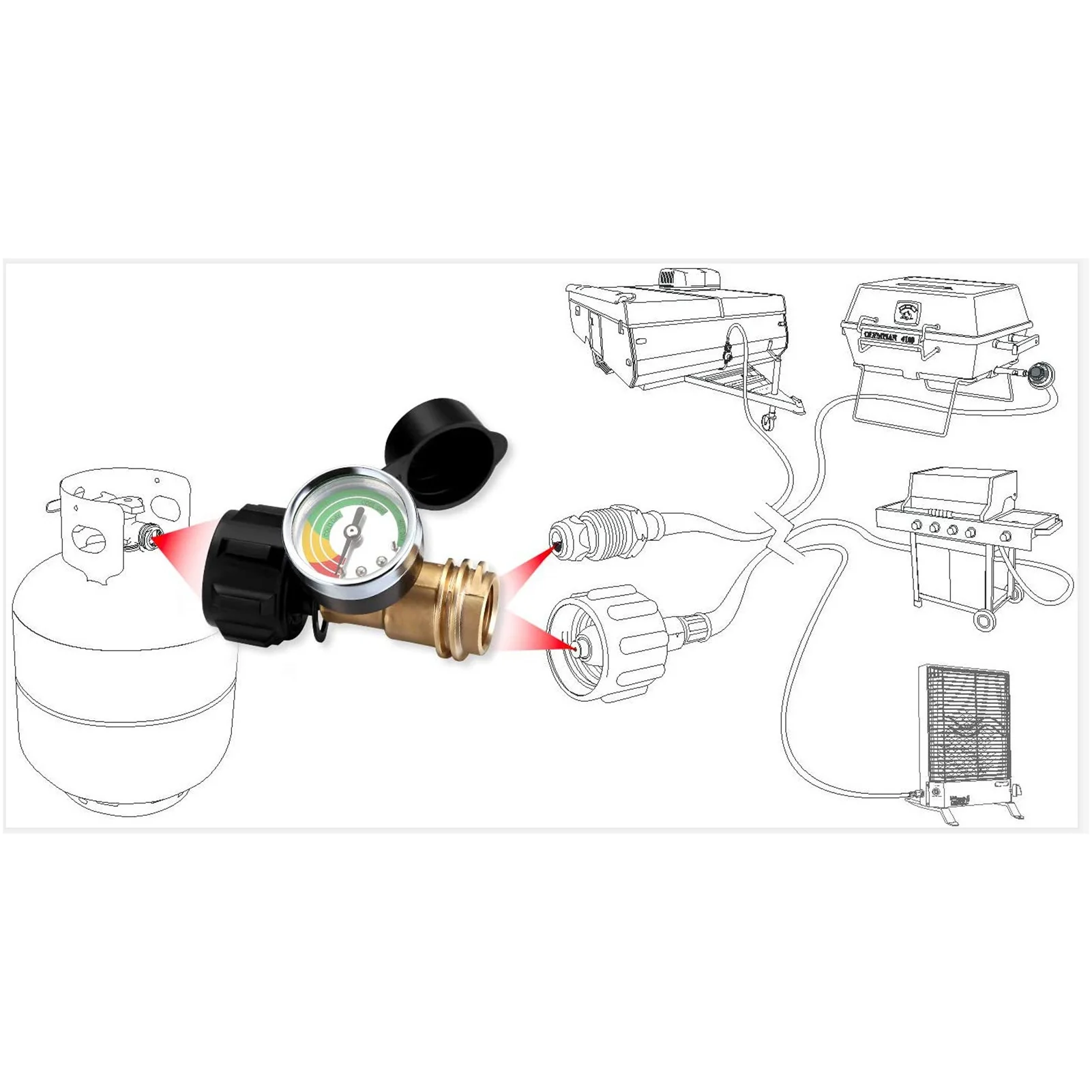 Нет необходимости в инструментах для установки, просто используйте пропановый сплиттер для подключения регуляторов к бакам и шлангам.
