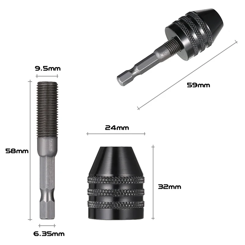 Мгновенно преобразует ударные драйверы для удержания сверл без быстрого изменения и бит драйвера