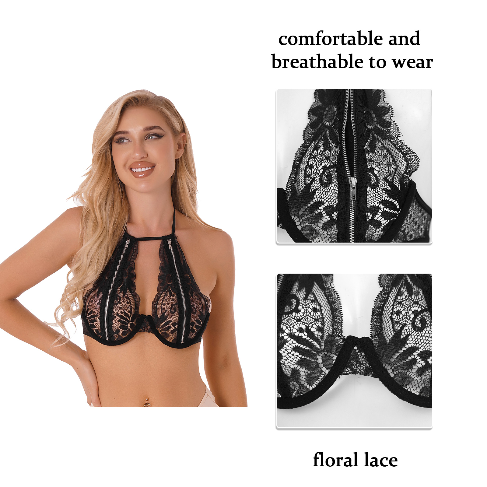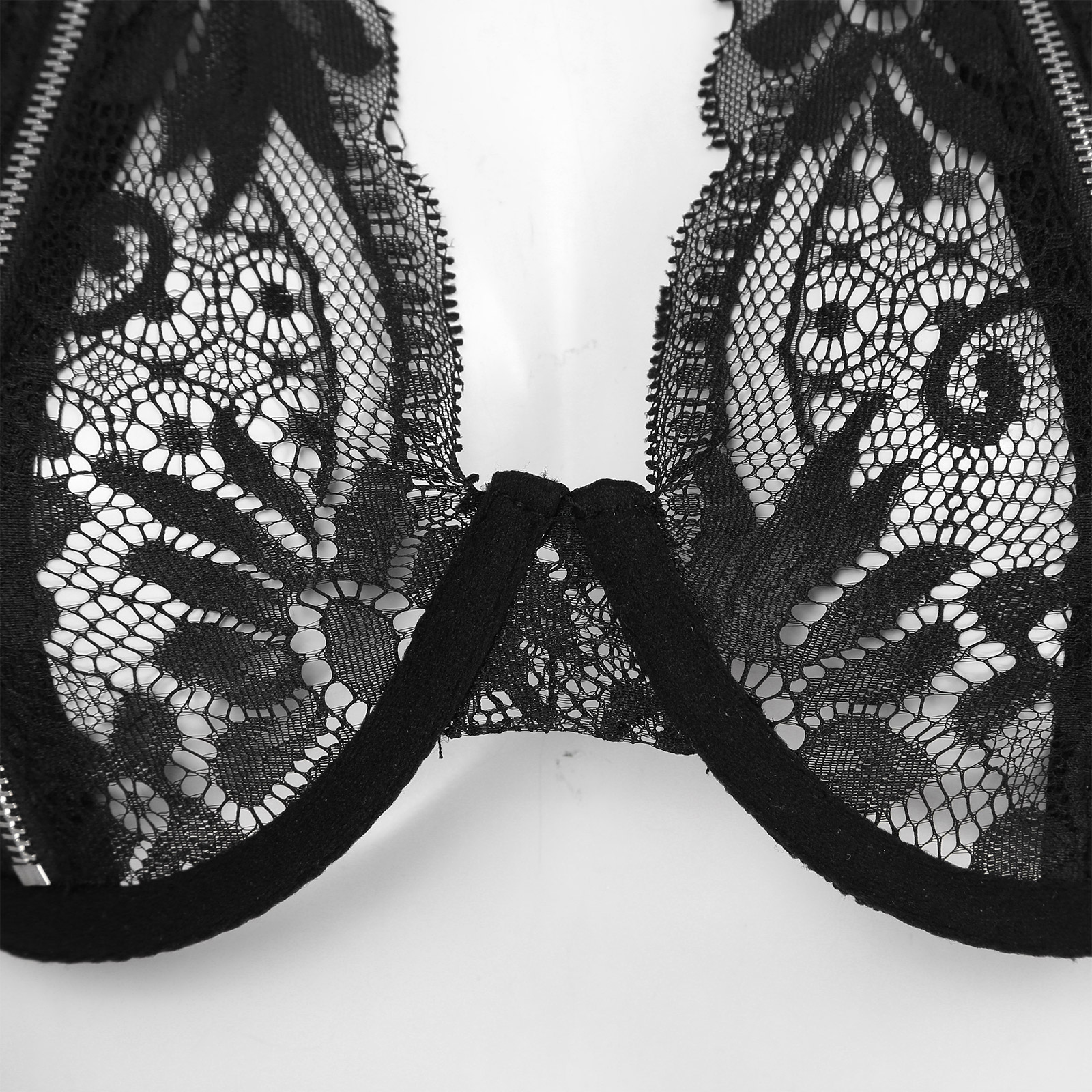 Женский бюстгальтер на шнуровке с застежкой-молнией, прозрачный кружевной бюстгальтер на косточках, нижнее белье, одежда для сна.