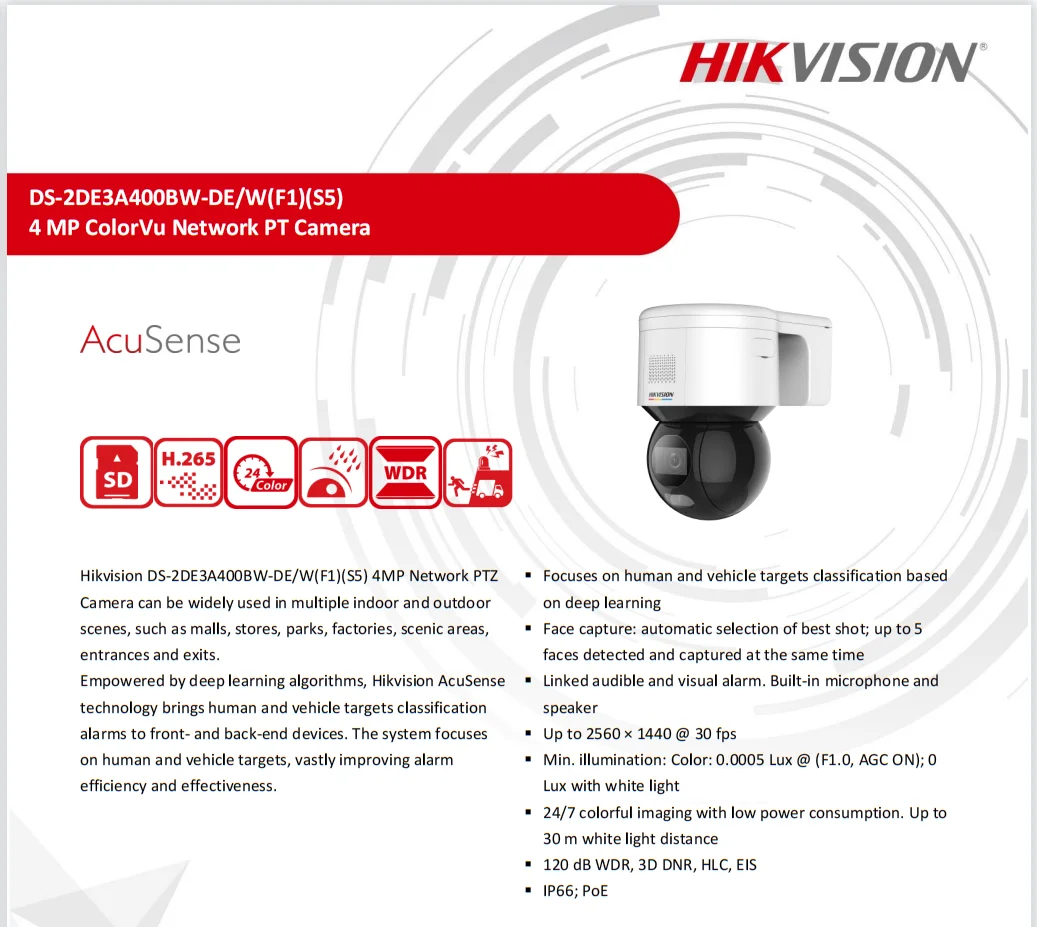 24/7 красочное изображение с низким энергопотреблением. Белый светильник на расстоянии до 30 м