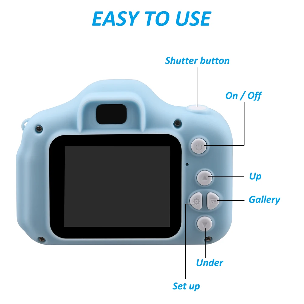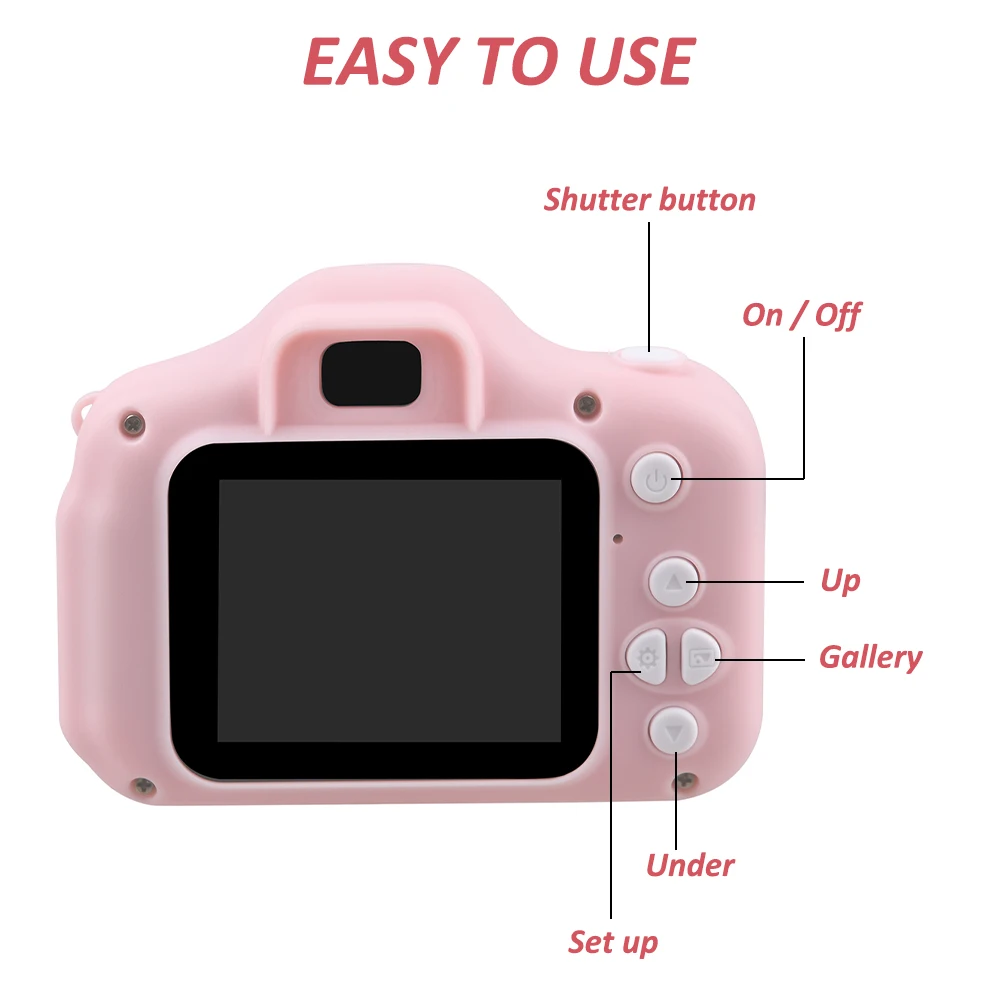 3. Безопасный и прочный для детей: экологически чистый ПП нетоксичный материал, защитный ударопрочный корпус, прочный и безопасный для детей, обеспечивает им удобный способ фотографировать или записывать видео с помощью детский фотоаппарат.