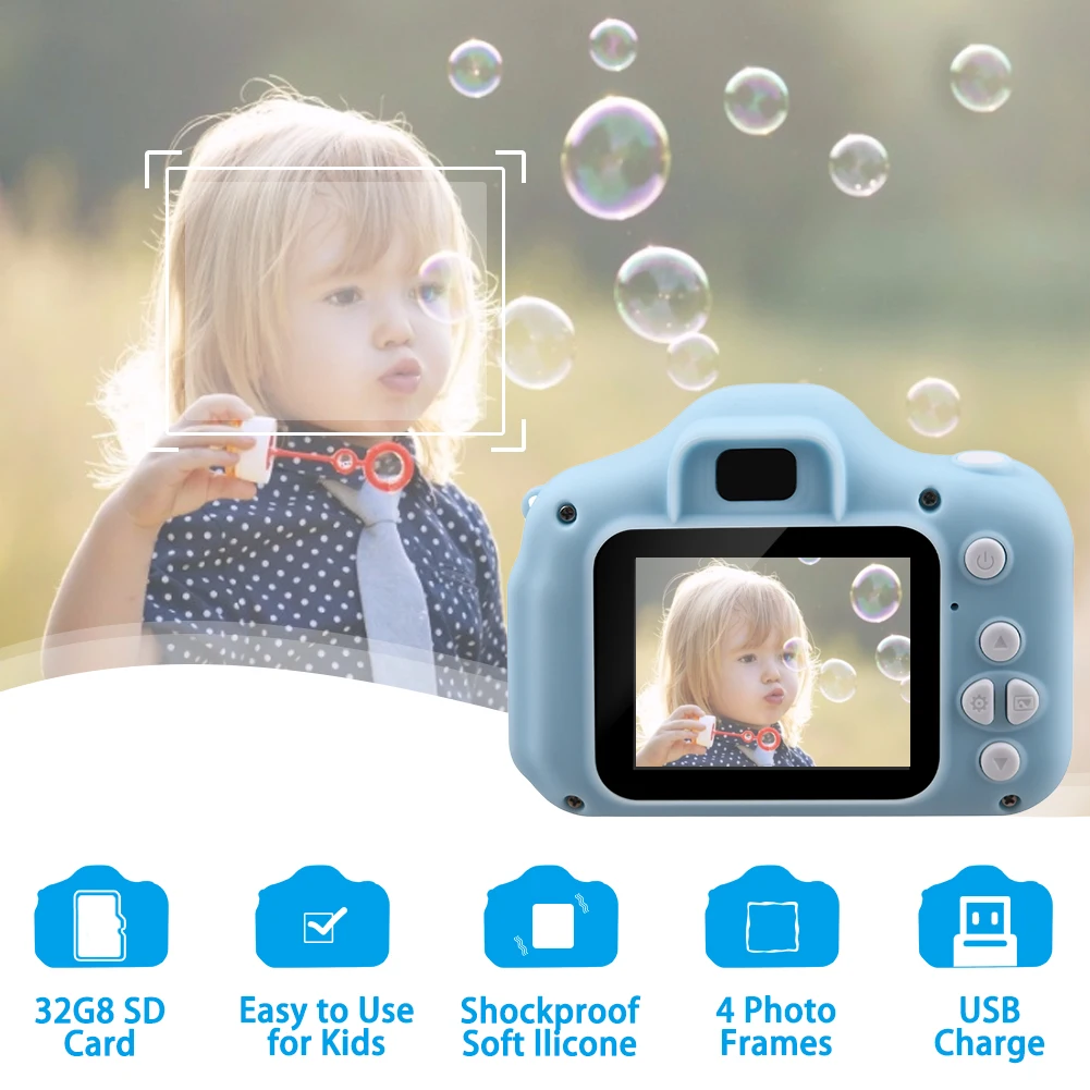 4. Лучшая Запись более счастливой памяти для детей: эта камера для малышей поставляется с картой памяти 32G и встроенной перезаряжаемой литиевой батареей, когда дети снимают камеру для детей, просто откройте переключатель, затем вы можете наслаждаться веселой фотографией, простой в использовании для детей