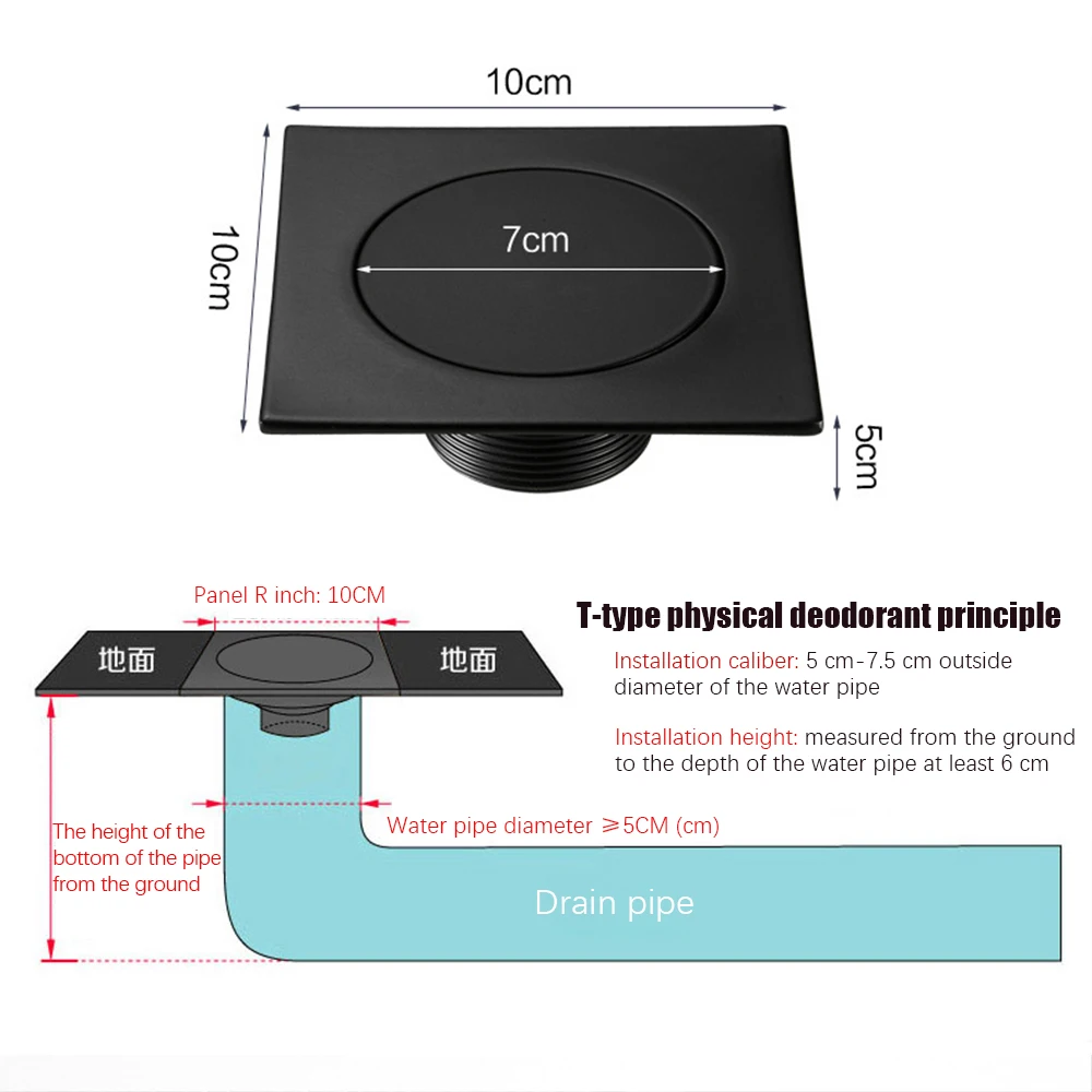 Серебристо-черные всплывающие ножные сливные латунные Водостоки для ванной с защитой от запаха, с эффектом дезодорирования, Квадратная Крышка для душевой комнаты 10x 10 см