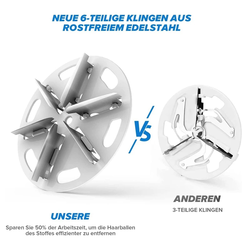 [Быстрый и эффективный] Улучшенный 6 лезвий, по сравнению с традиционными 3 лезвиями, он на 30% длиннее и на 0.5% толще, что повышает эффективность бритья на 50%. Линтовая бритва Может быстрее и чище очищать волосы на одежде и подходит для всех типов одежды и тканей, включая старые носки, свитера, пальто, диваны, одеяла, простыни.