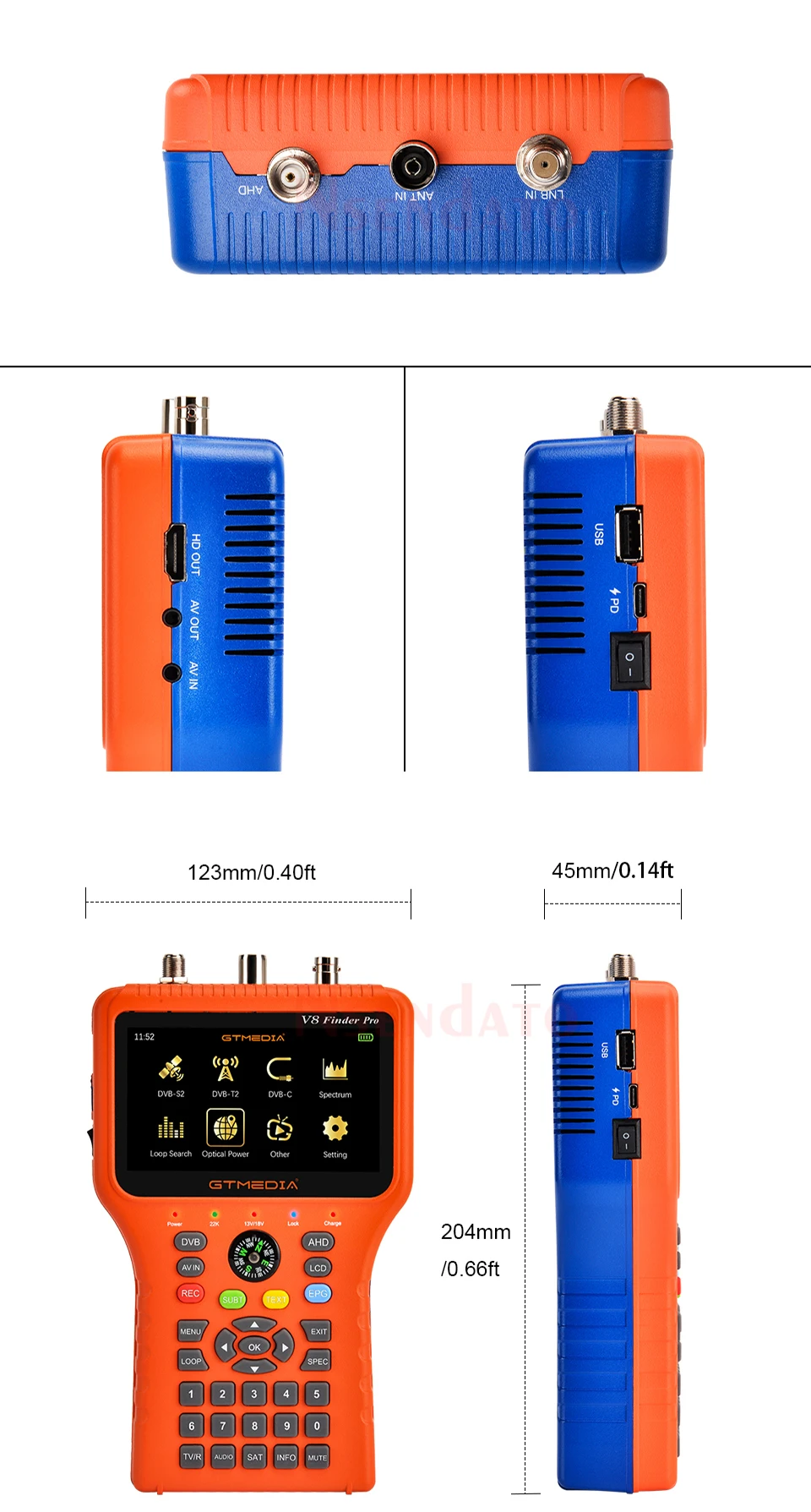 GTMEDIA V8 Finder 2 Pro Meter HD DVB-T2 спутниковый сигнал DVB S2X/T2/ATSC-C автоматический рассчитать угол AZ,EL для ACM AHD IKS