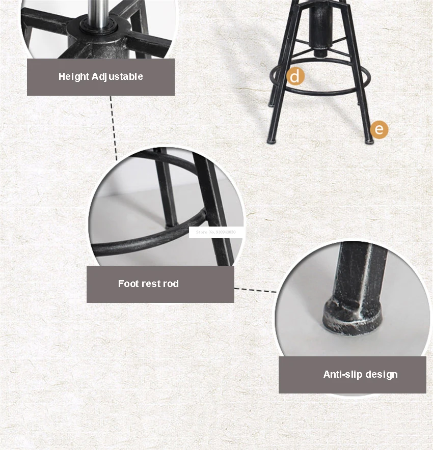Название: регулируемый по высоте барный стул Высота сиденья: 84-98 см (регулируется) Вращающийся: Поворот на 360 ° Материал: высококачественный импортный железо + Высококачественный Импорт из искусственной кожи + сосновая древесина Посылка включает в себя: 1 * барный стулДемонстрация товара: