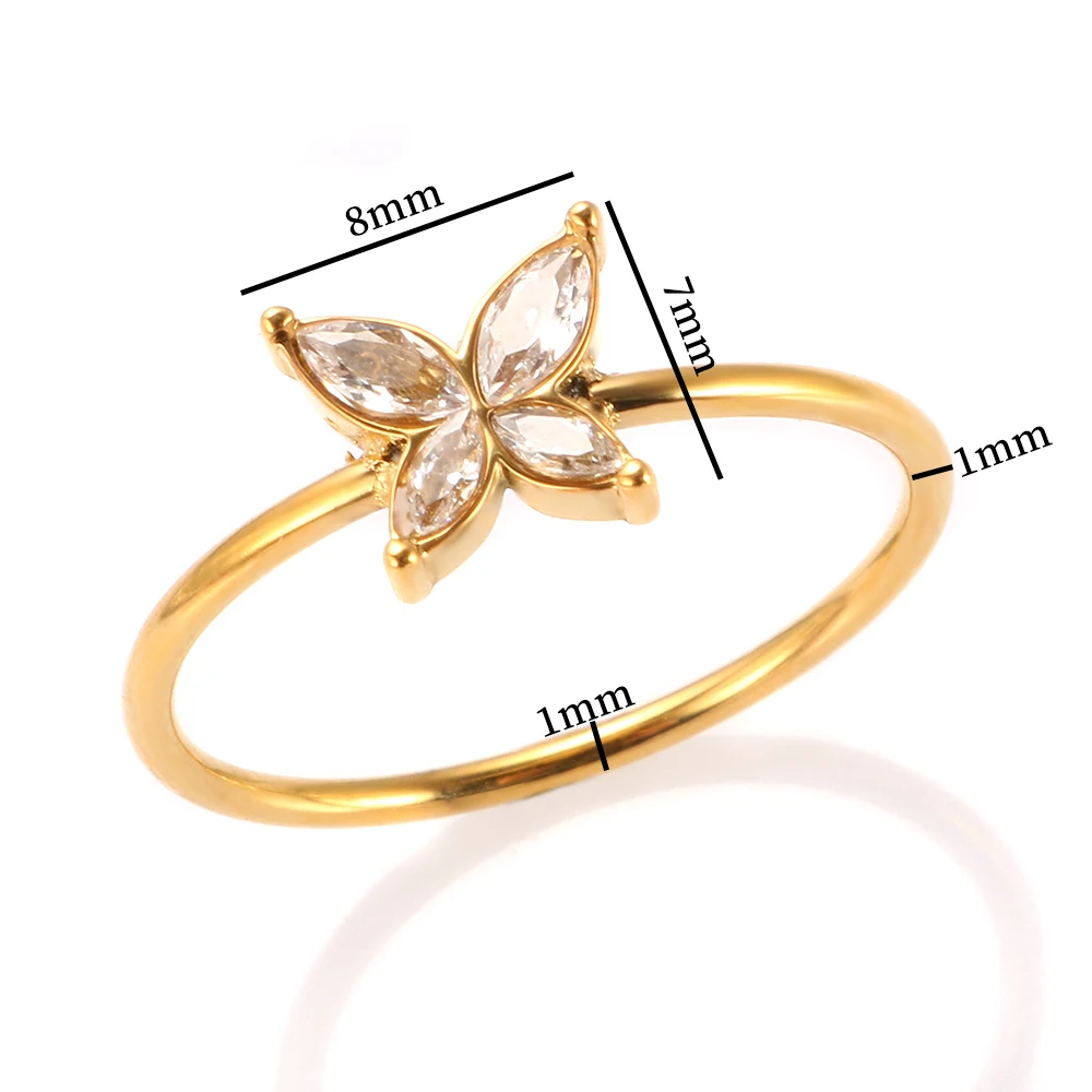 Новое модное ювелирное изделие, кольцо из нержавеющей стали с бабочкой и цирконием, 18K позолоченное PVD кольцо для женщин и девушек, вечерние Обручальные кольца