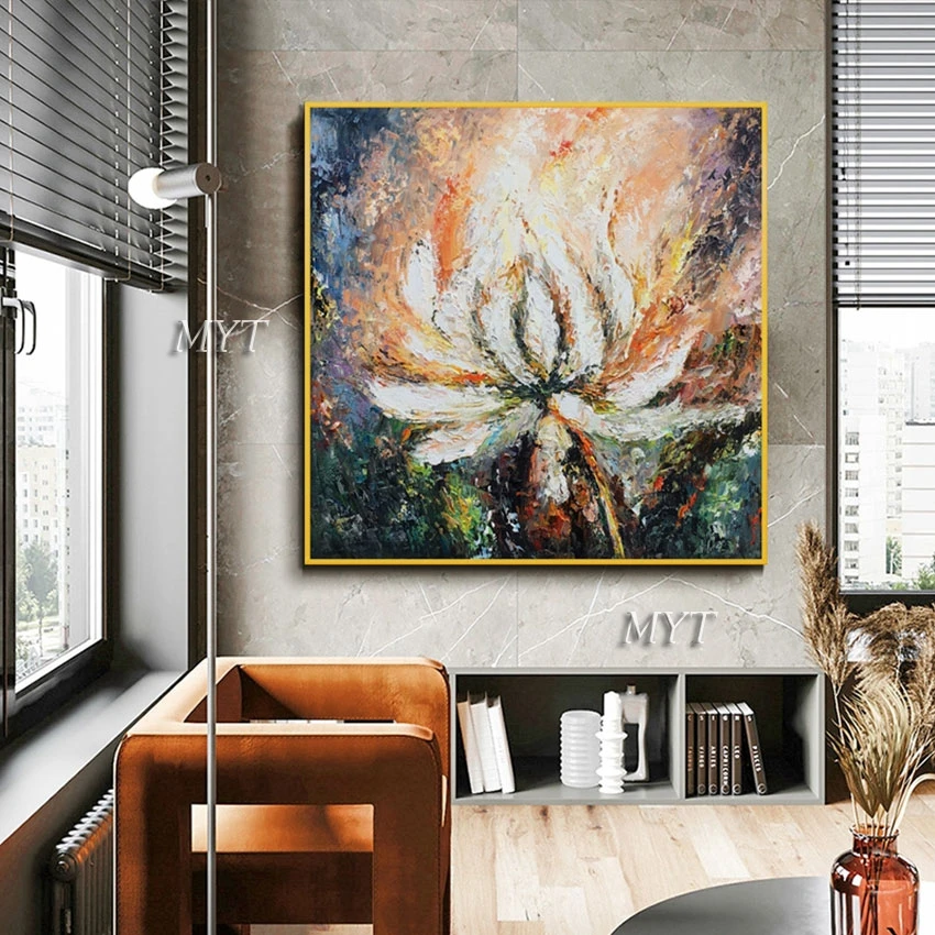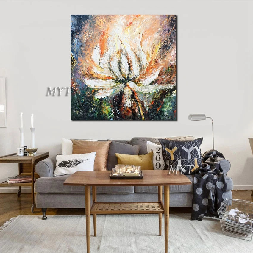Современная палитра, нож, цветочный рисунок, картина маслом, без рамки, холст, декор для гостиной, цветочный рисунок лотоса, домашняя настенная живопись, дешевое искусство