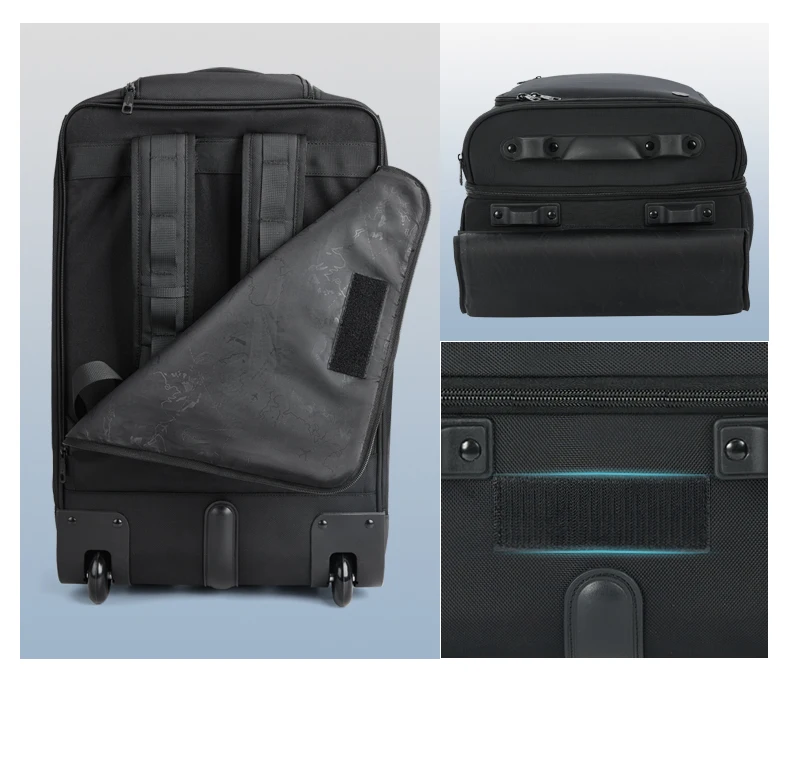 【Многофункциональный колесный рюкзак 】дизайн с тремя способами носить его как рюкзак, деловую сумку или рюкзак на колесиках. Анти-блокирующая крышка может хранить ремни, когда молния, также она может защитить вашу одежду от загрязнений, когда крышка открывается