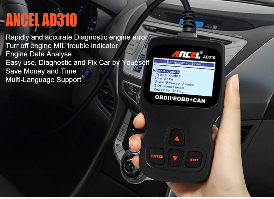 Автомобильный сканер ANCEL AD310 OBD2 с ЖК-дисплеем, диагностический сканер OBD 2 OBD2 PK ELM327