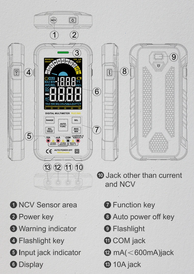 Умный мультиметр Цифровой Профессиональный AC Конденсатор постоянного тока мультиметр тестер Вольтметр Амперметр электрические инструменты измеритель напряжения