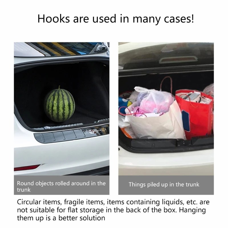 ♥Простая установка: крючок для Tesla Model 3 имеет болт, который торчит сверху области. Просто прикрутите крючок на выступающий болт.