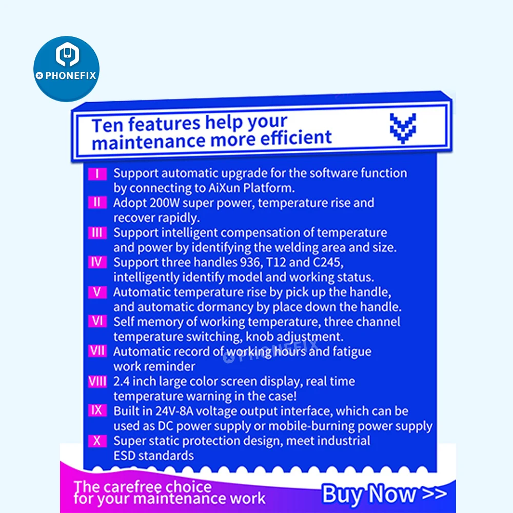 2. Принять 200 Вт Супер источник питания, только занимает 4 секунды для паяльника C245 для повышения до 380 ℃.