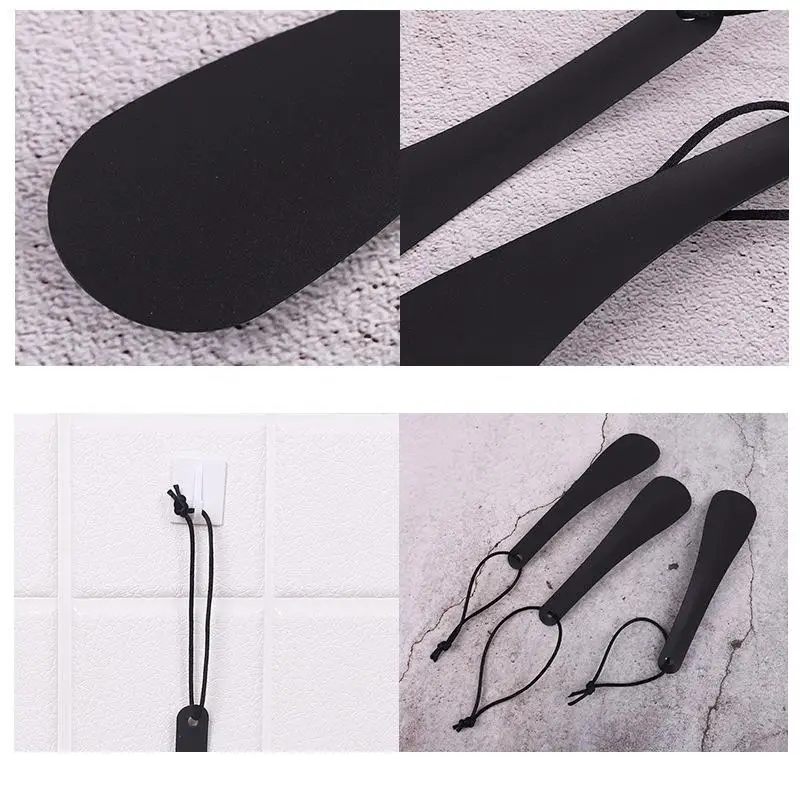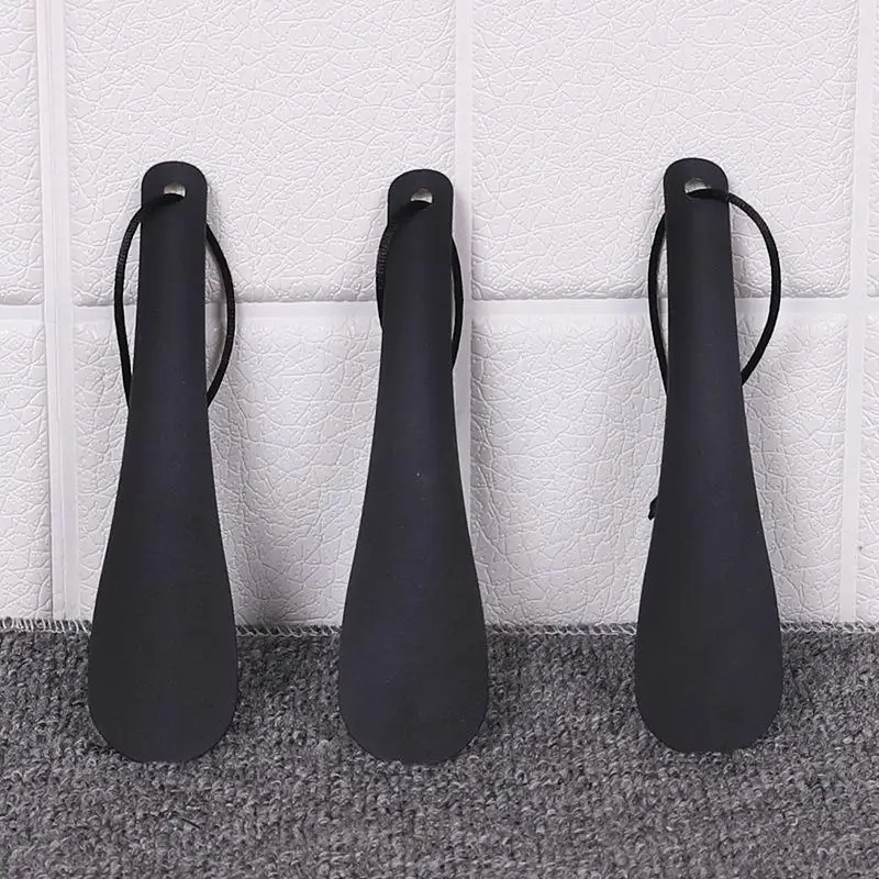 19 см, с длинной ручкой, рожок для обуви, нержавеющая сталь, ложка для обуви с кожаным покрытием, вспомогательный рожок для обуви, легкая одежда, обувь, подъемный инструмент, черный цвет