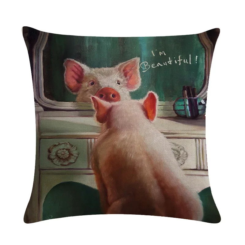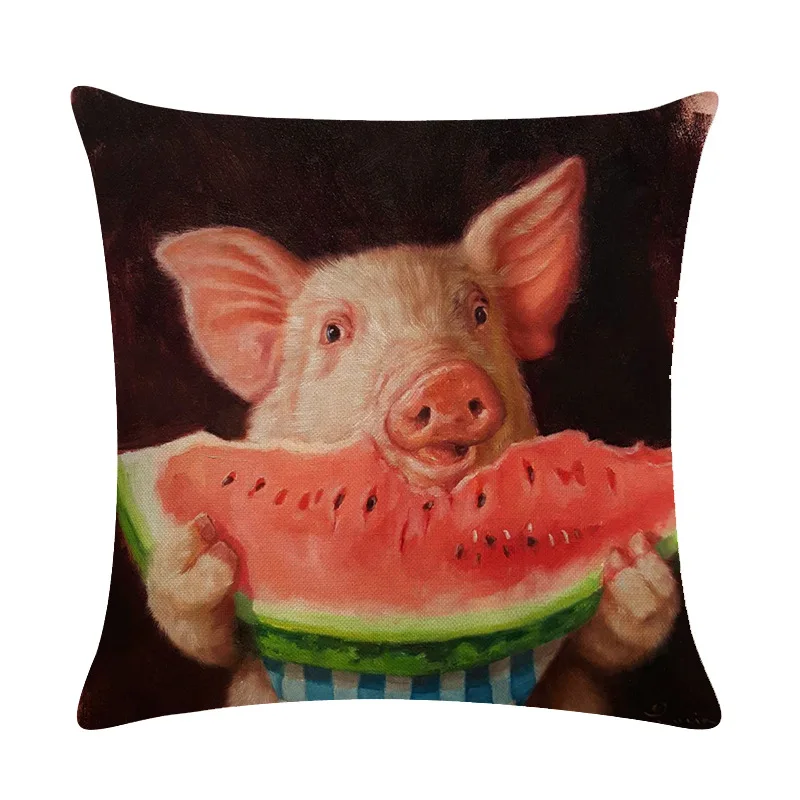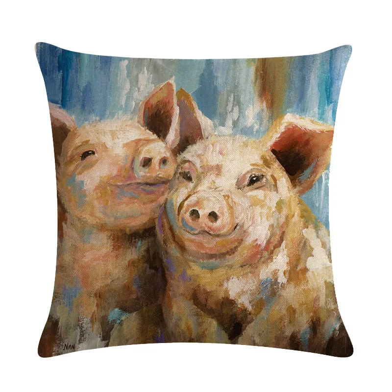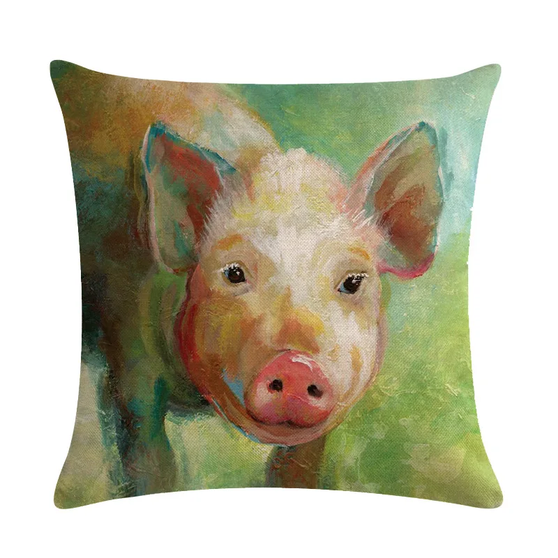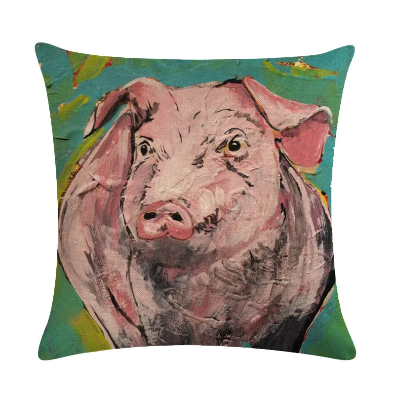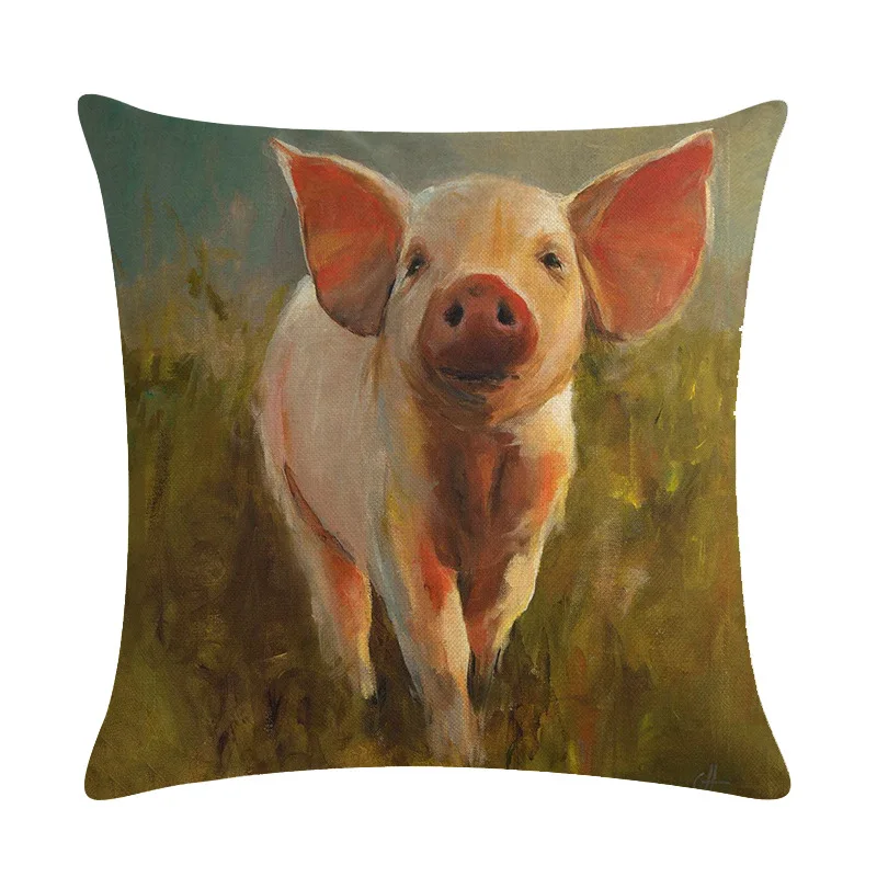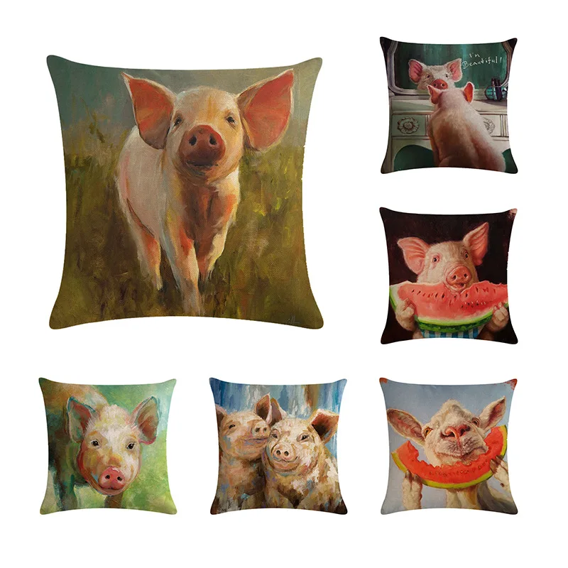 Картина маслом, животные, розовая свинья, искусственный лен, декоративная наволочка для подушки, дивана, стула, альпака, наволочка для подушки, для гостиной, для дома, Декор