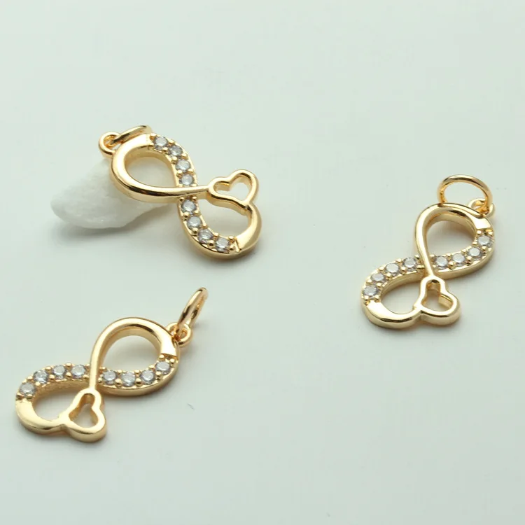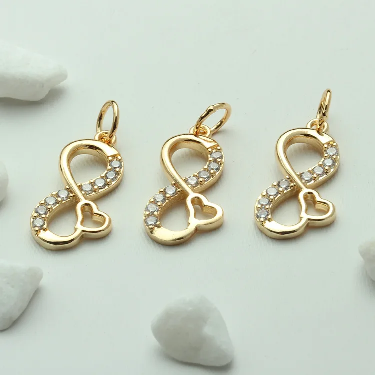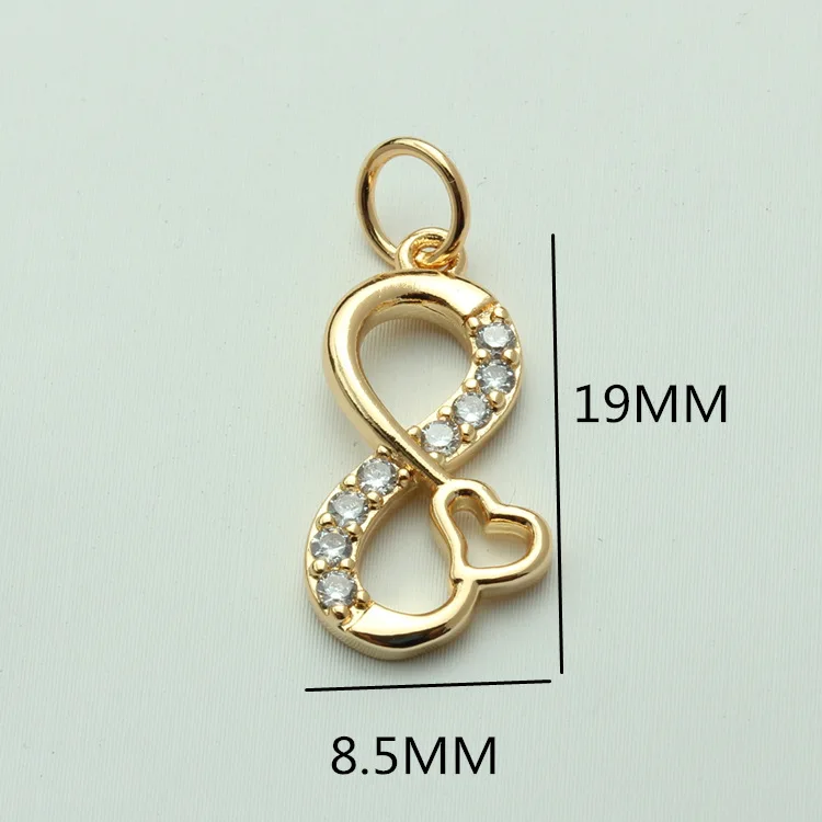 14K gold color set zircon heart pendant with 8 character DIY jewelry gold necklace earrings small pendant