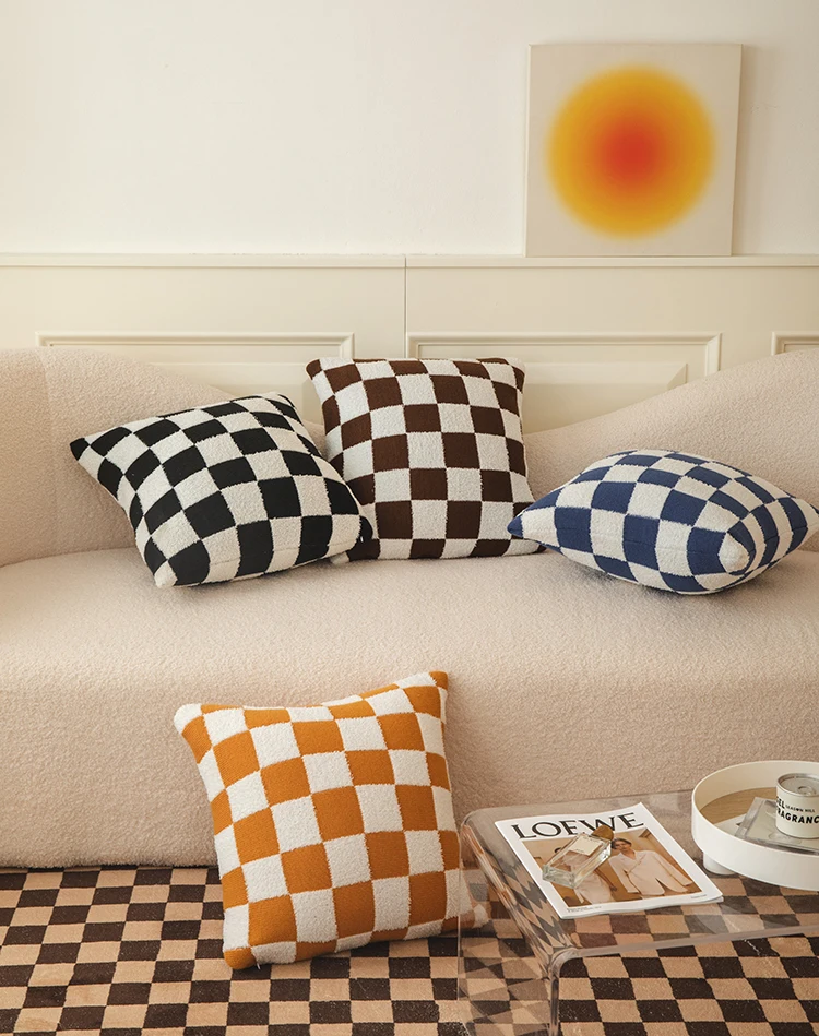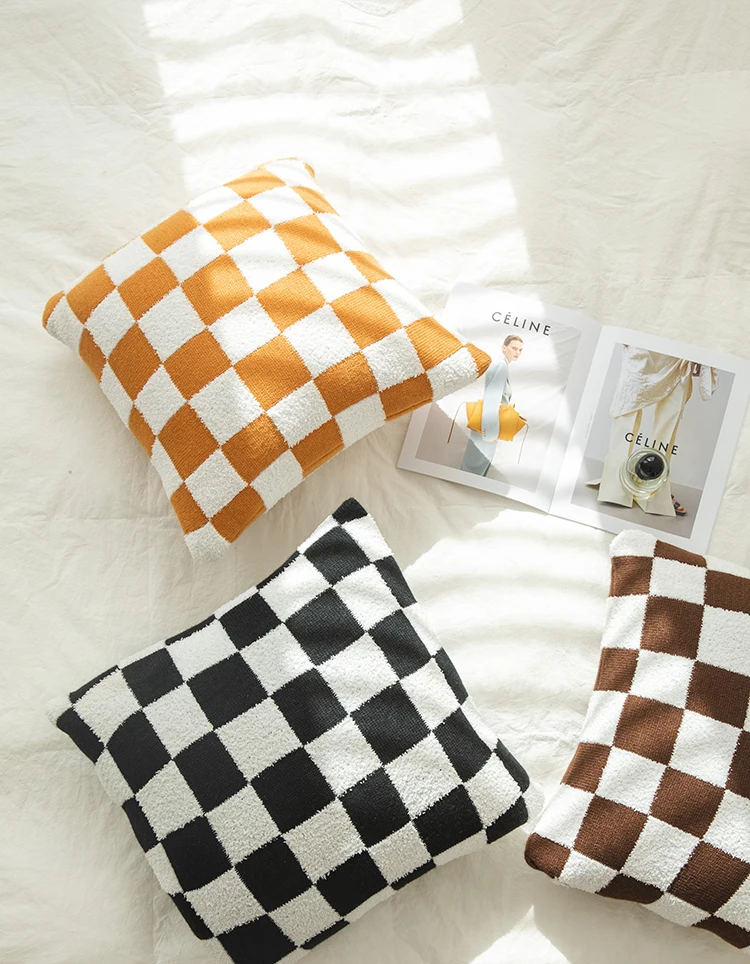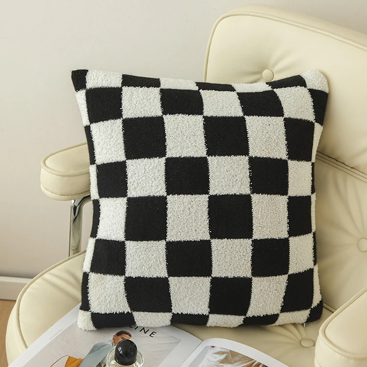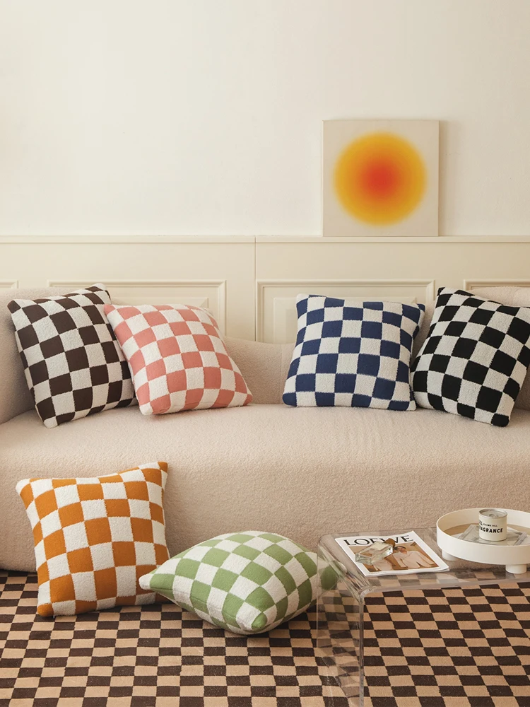Вязаная наволочка для подушки, мягкая, в клетку, черный, оранжевый, зеленый, с ворсом, наволочка 45 см * 45 см для украшения дома, гостиной, кровати