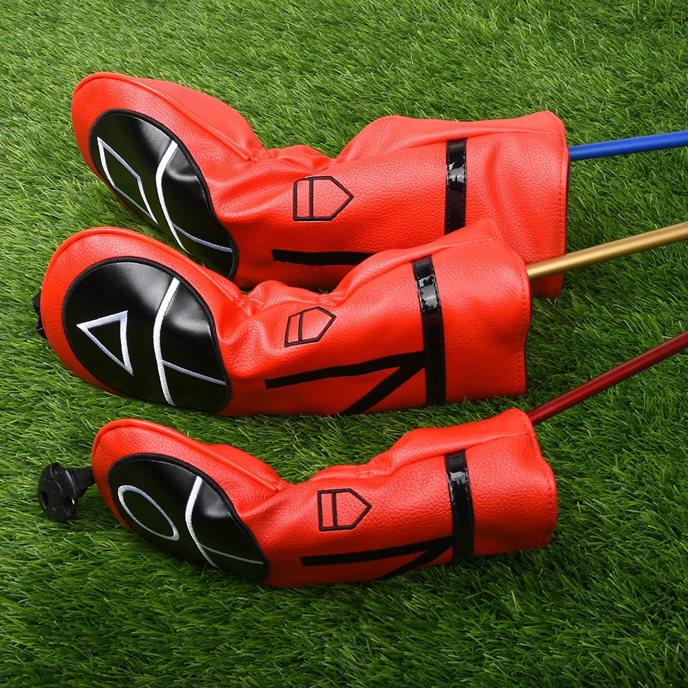 3 шт./компл., маска для игры в кальмары, покрытие для головы гольф-клуба, защита деревянного водителя, головной убор, аксессуары для гольфа