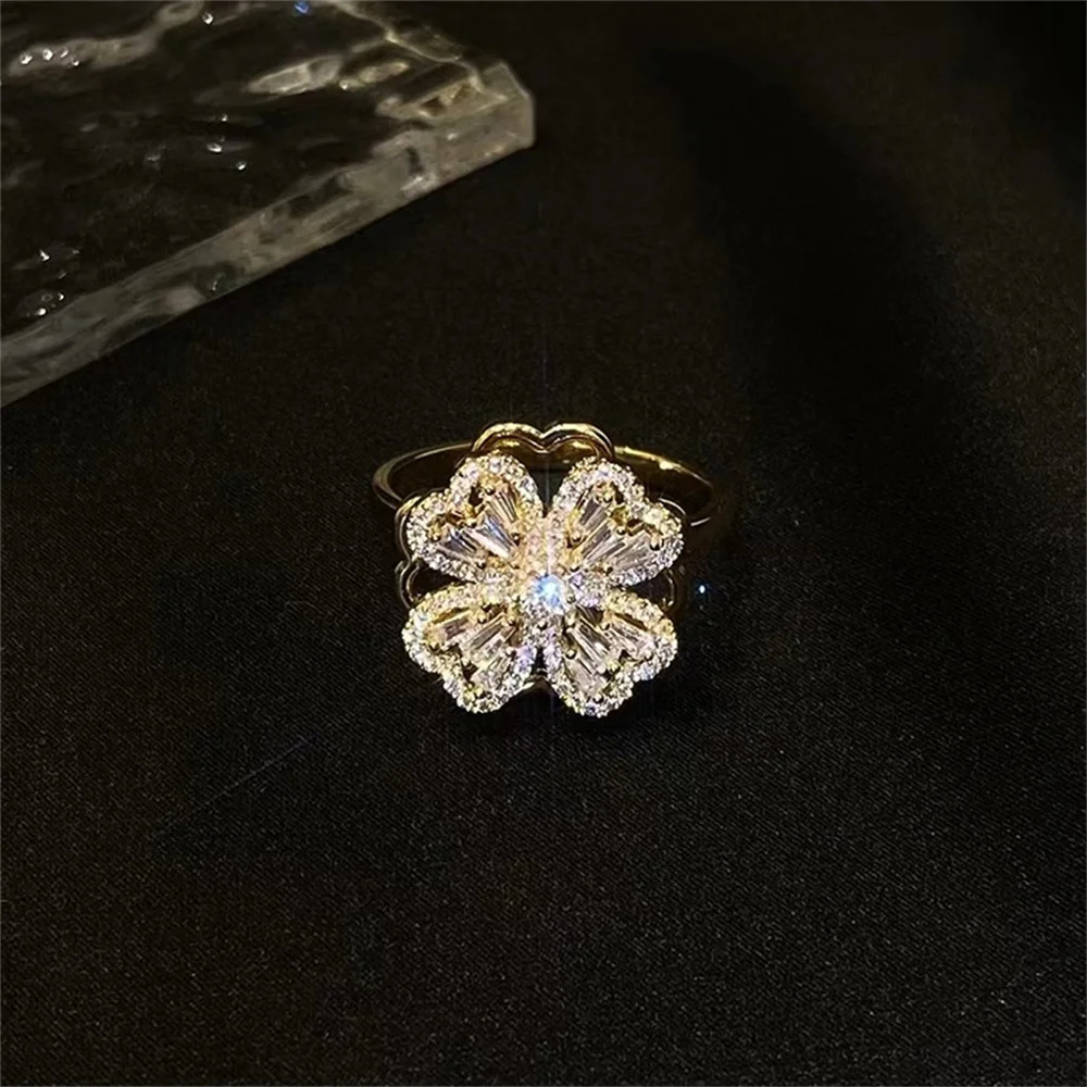 Вращающееся кольцо в виде четырехлистного клевера с цирконием, Винтажное кольцо с тревогой, необычное антистрессовое кольцо для женщин, Трендовое ювелирное изделие