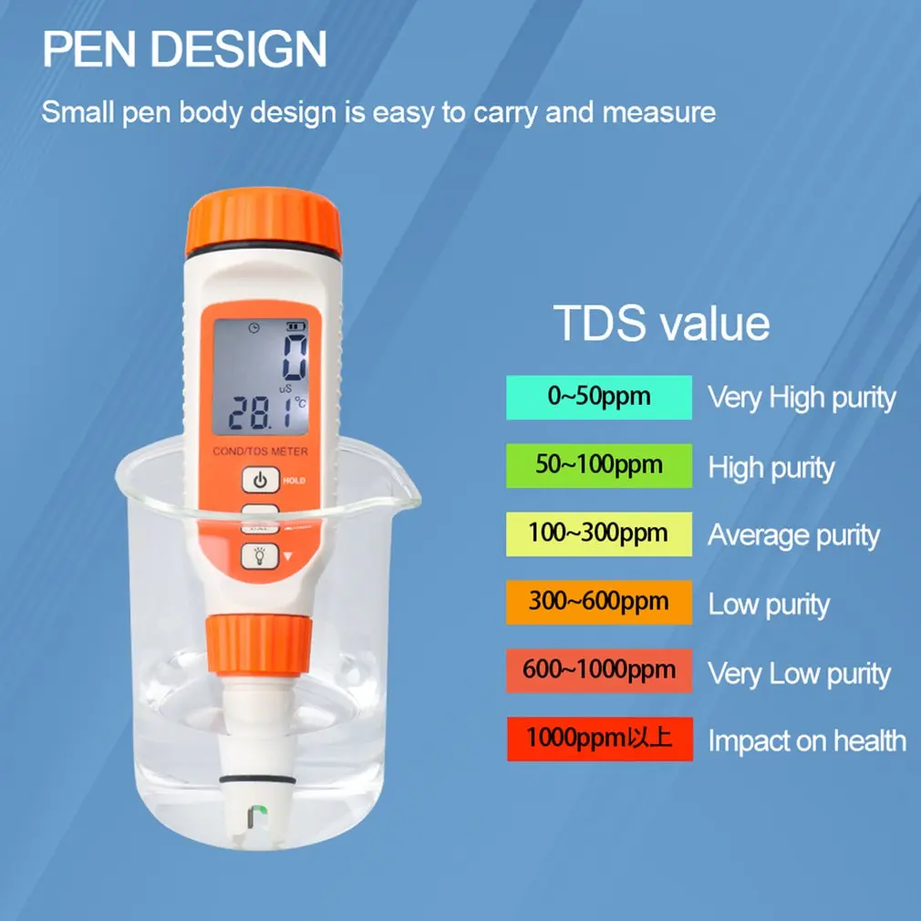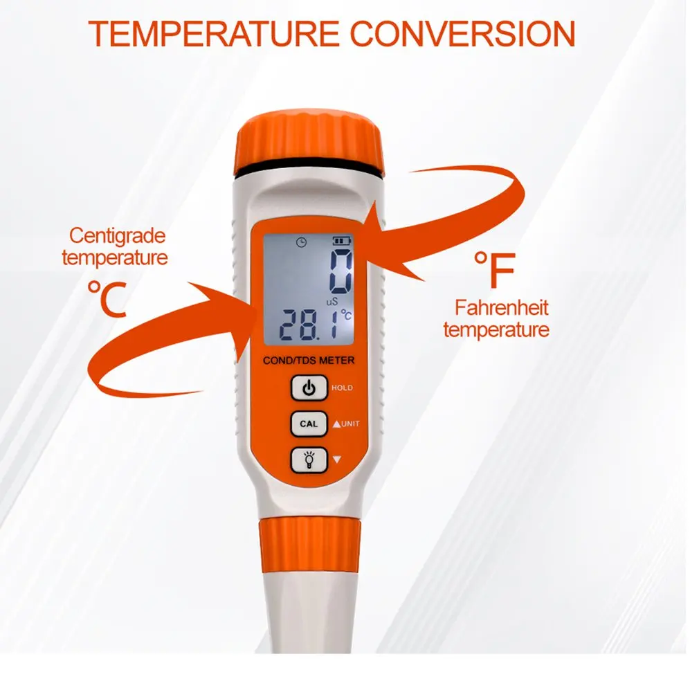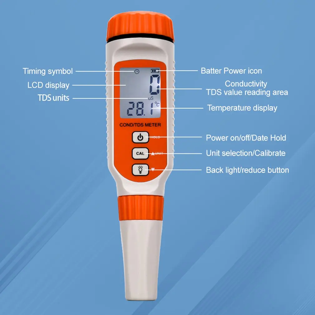 1. Тест COND (проводимость) / TDS (полное растворенное твердое вещество) уровень и температура (℃ / ℉) воды.
