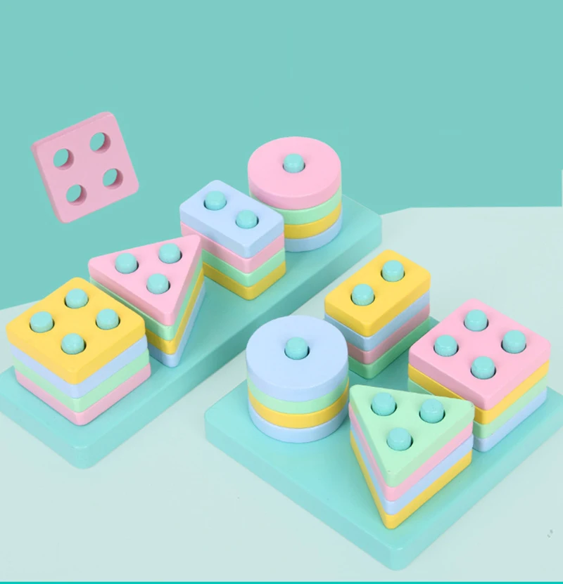 2. Поместите форму на соответствующий набор колонн, чтобы улучшить способность ребенка распознавать форму, концентрацию упражнений и терпение, вдохновить логическое мышление и помочь развитию мозга