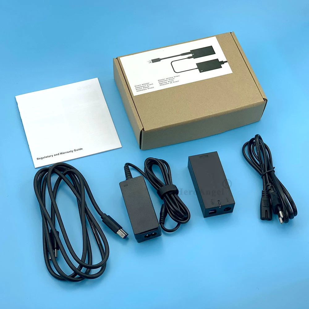 Этот адаптер поставляется с одним штекером питания, источником питания переменного тока, адаптером Kinect USB и фирменным разъемом адаптера к USB.