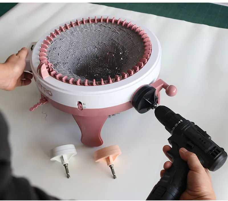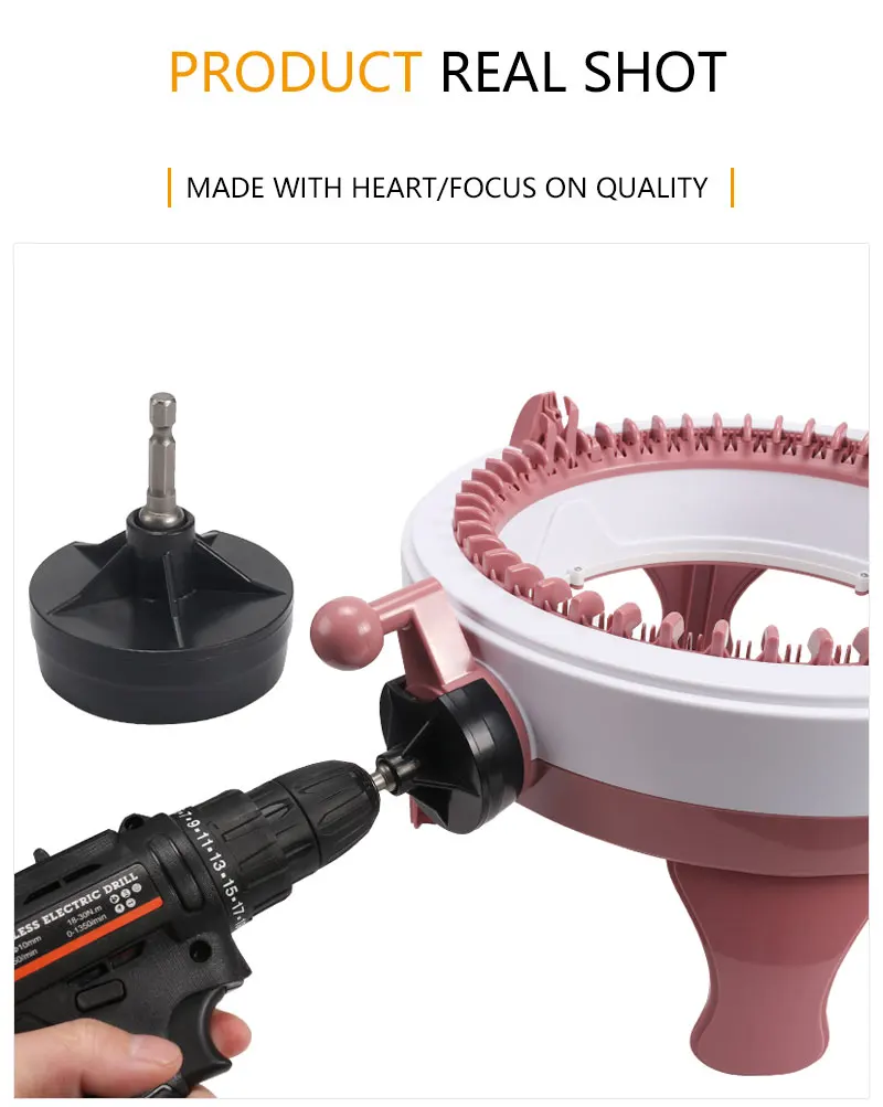 Прочная коническая конструкция: пожалуйста, не используйте высокоскоростные дрели, потому что это может повредить адаптер. Мы по-прежнему рекомендуем использовать адаптер питания со средней скоростью (до 180 об/мин), так как эти вязальные машины предназначены для ручной работы.