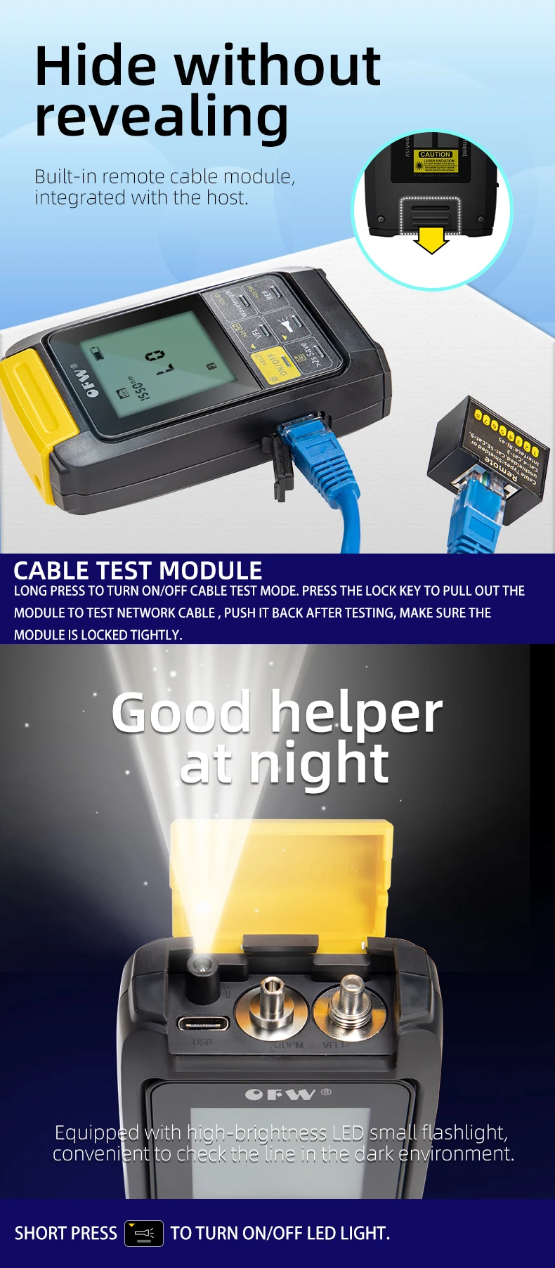 1. Короткое нажатие для переключения длины волны, длинное нажатие для включения функции идентификации длины волны