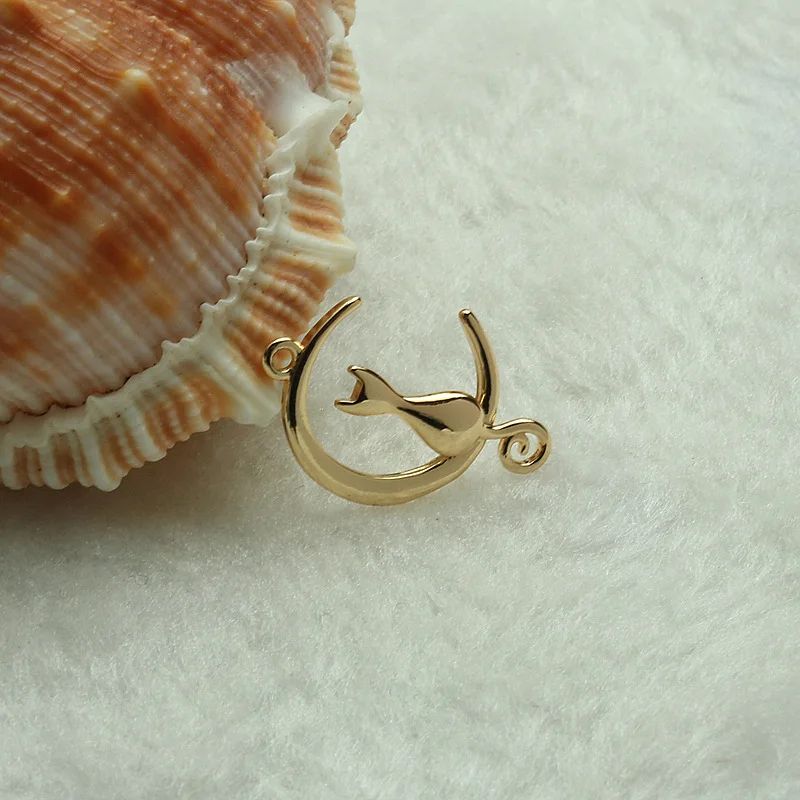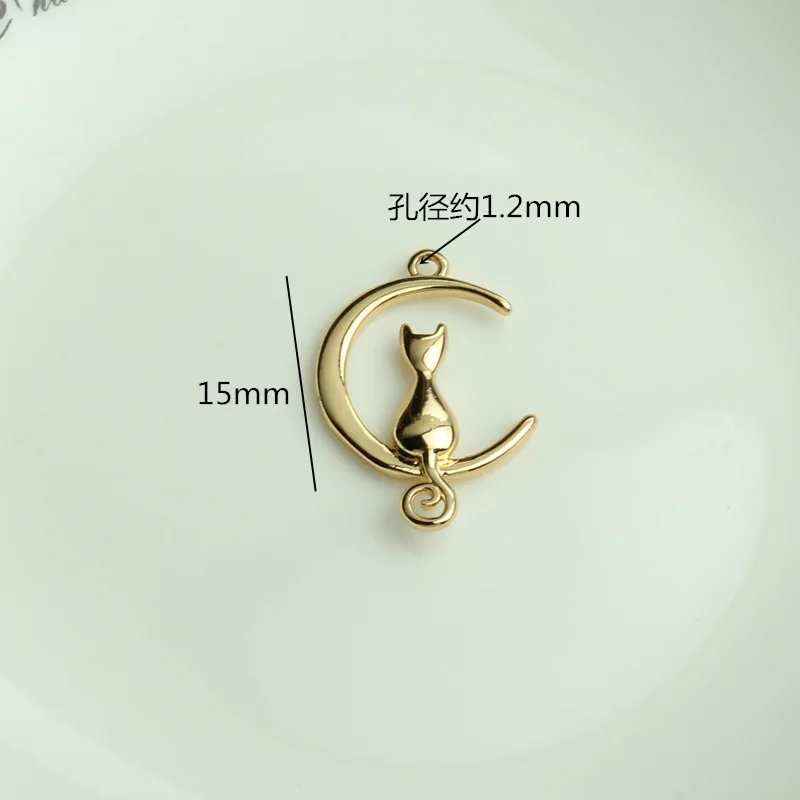 14K золотая луна котенок кулон DIY аксессуары ручной работы Золотые маленькие животные ушные крючки Аксессуары материал
