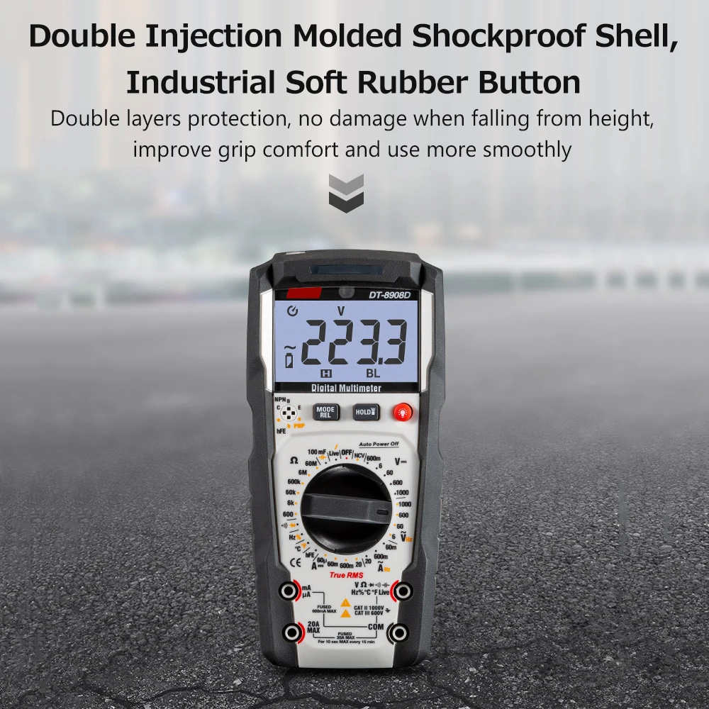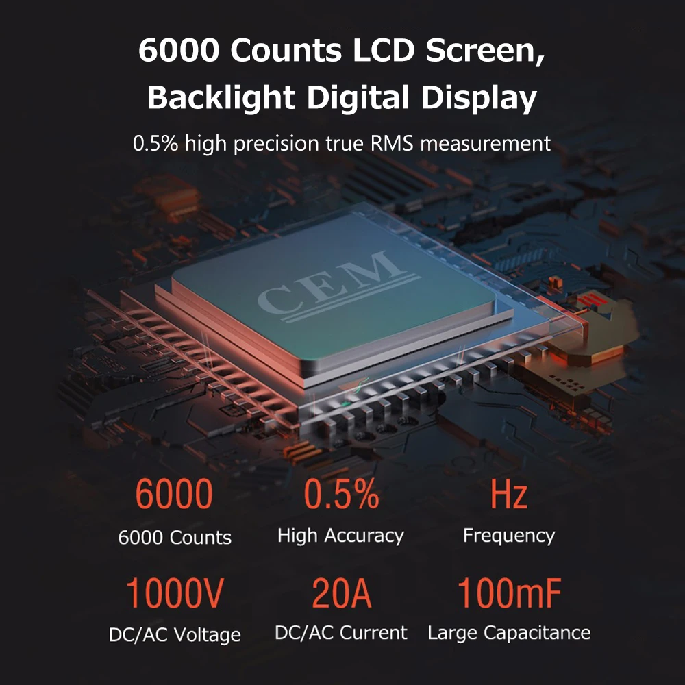 Интеллектуальная защита от горения: мультиметр отвечает стандартам безопасности двойной изоляции и имеет защиту от перегрузки для всех диапазонов, безопаснее для работы.