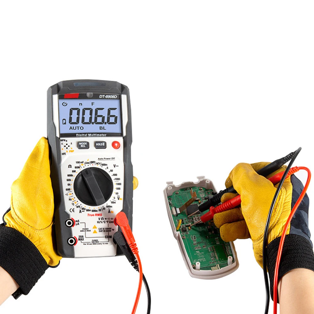 Широкий диапазон измерения: Может использоваться для измерения напряжения переменного/постоянного тока, переменного/постоянного тока, сопротивления, емкости, частоты, рабочего цикла, температуры, триода, диода, включения и выключения цепи.