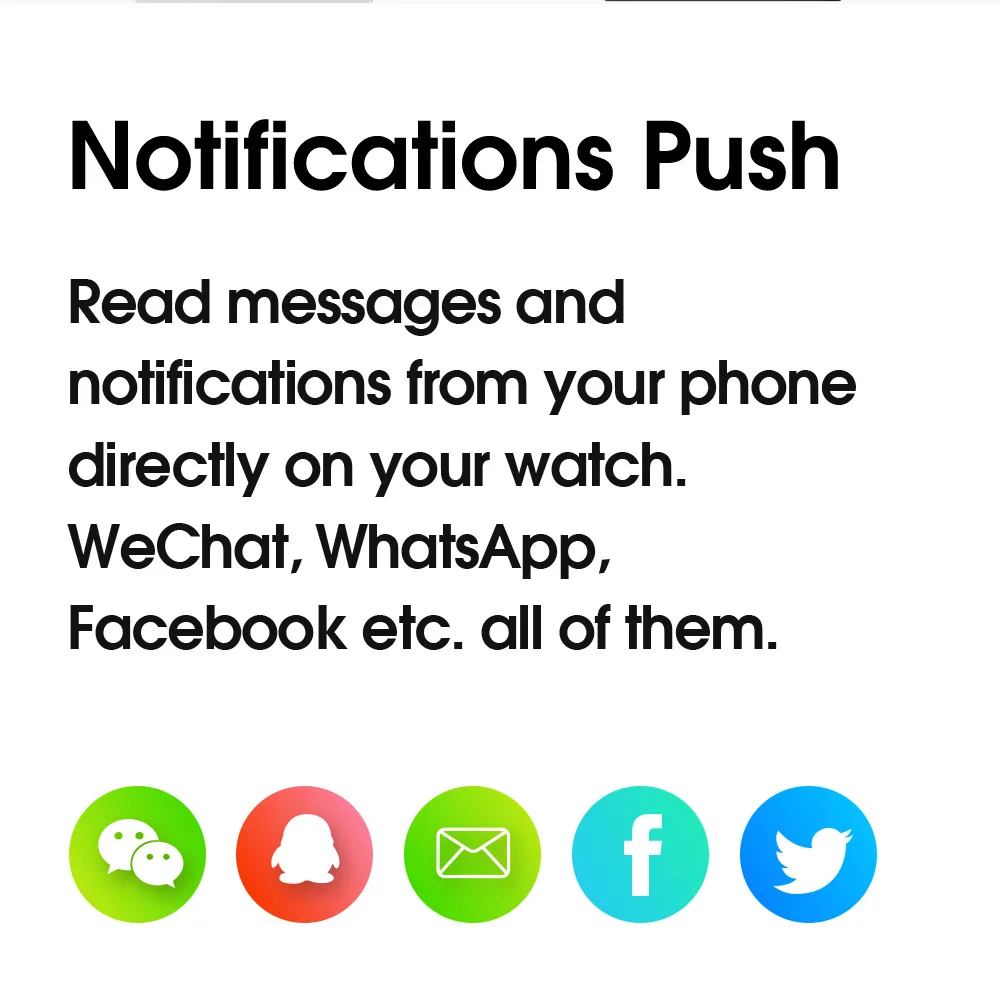 Прочитайте сообщения и уведомления с вашего телефона прямо на часах. WeChat, WhatsApp, Facebook и т. д. все из них.