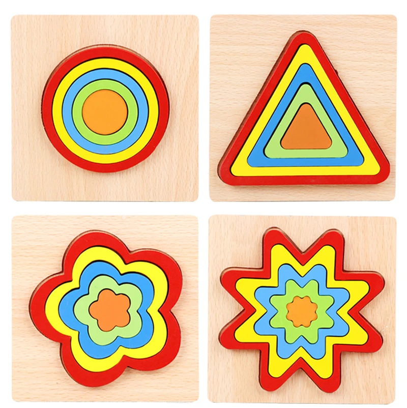 Деревянные геометрические формы головоломки Дети Монтессори игрушки образовательная форма познание головоломка для детей доска обучения сенсорная игрушка