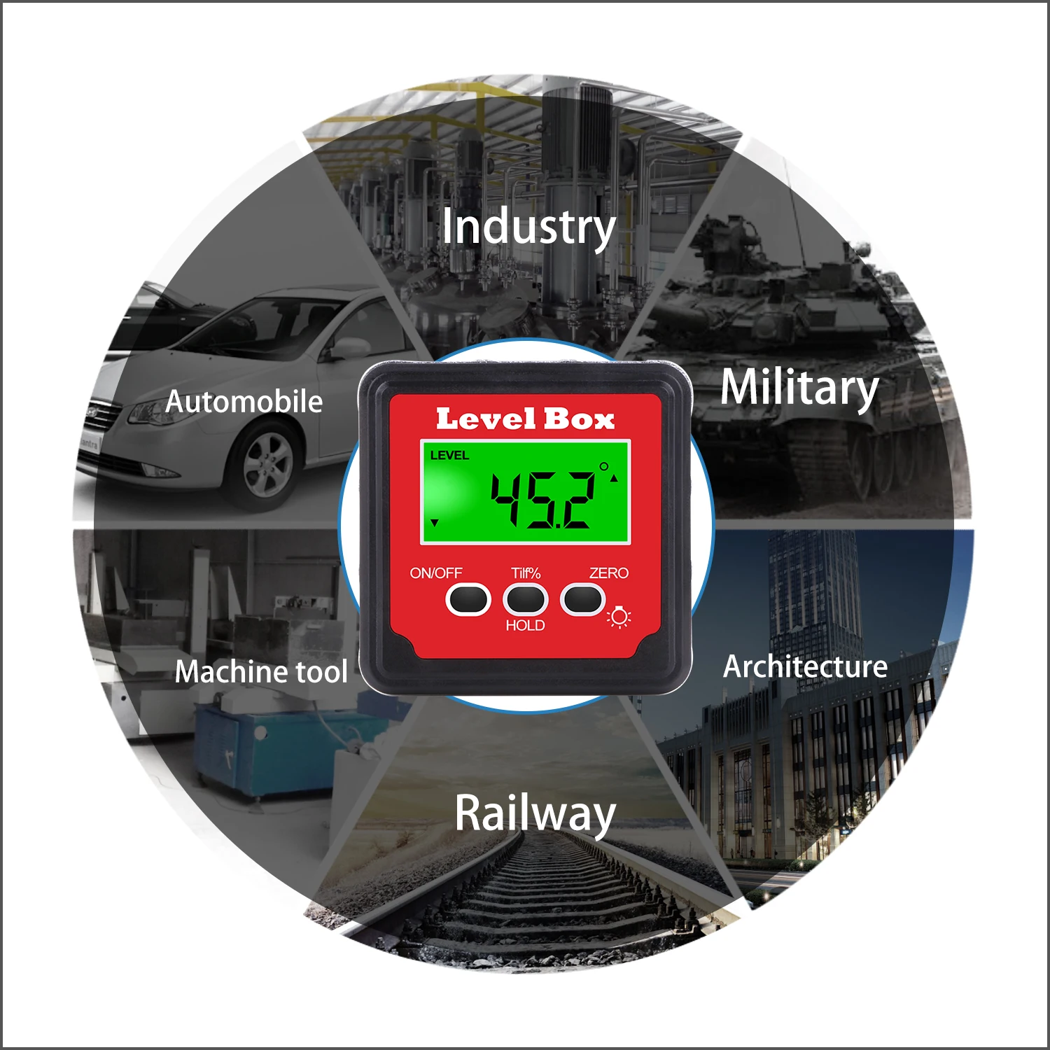 2. Прочная алюминиевая основа и магнитное плоское основание: цифровой датчик угла применяется прочный алюминиевый сплав вместо пластика для основной основы. Это обеспечит многолетнее использование.