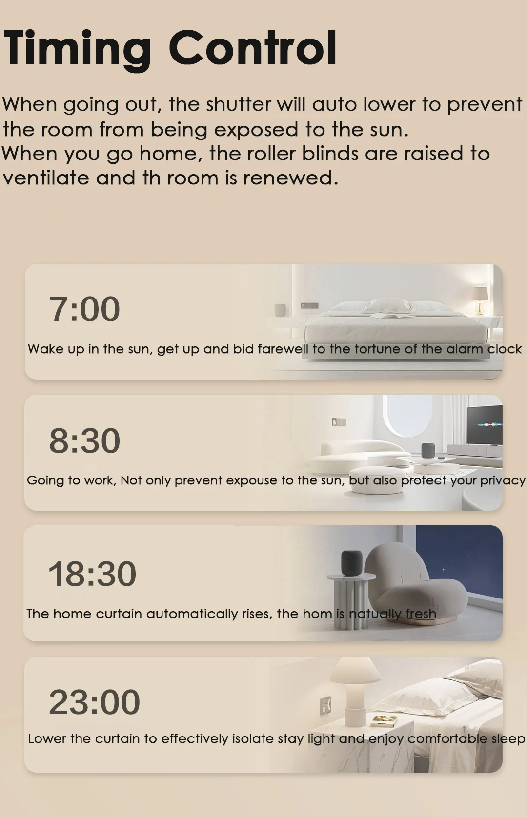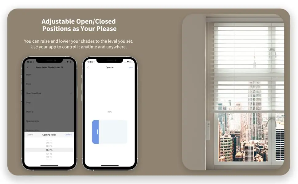 [Предварительный график и положение] Установите расписание в соответствии с вашими потребностями, и ваши роликовые оттенки будут автоматически открываться или закрываться в определенное положение в определенное время. Например, вы можете свободно установить время, когда вы просыпаетесь, выходите из дома, приедете домой и спите.