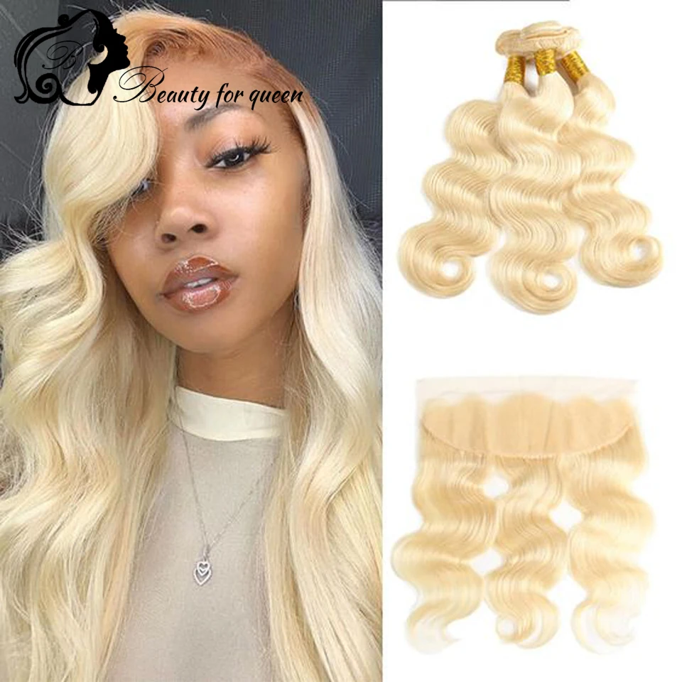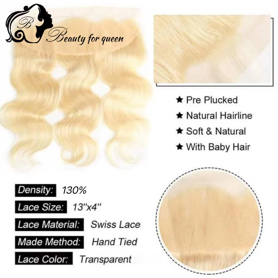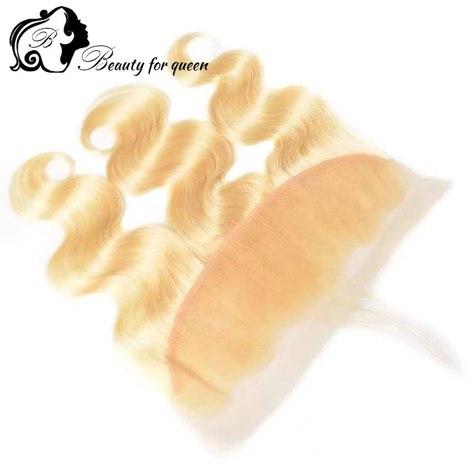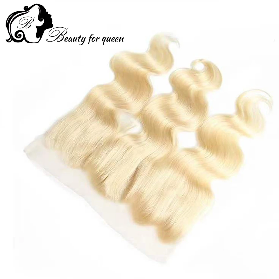 613 волнистые человеческие волосы пряди с фронтальной блонд 13 × 4 Remy прозрачные кружевные фронтальные предварительно выщипывающиеся бразильские волосы для женщин