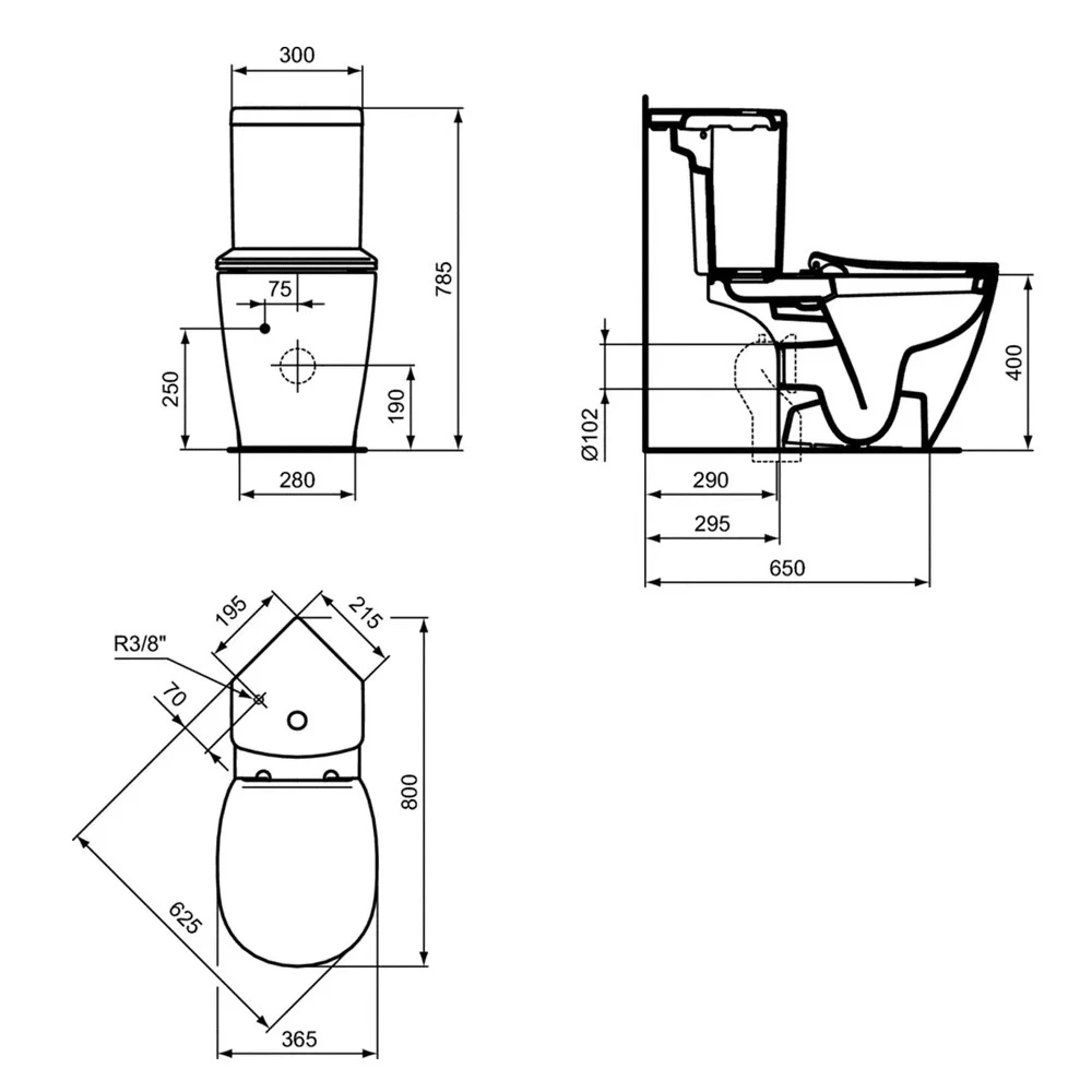 CONNECT Напольный унитаз для монтажа с бачком, горизонтальный выпуск, с крепежом TT0257919. Бачок и сидение/крышка заказываются отдельно.