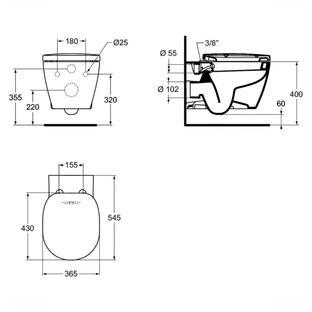 CONNECT Подвесной унитаз с функцией биде, для монтажа с сидением и крышкой E712801/E712701 (обычное) или E772301/E772401 (тонкое).