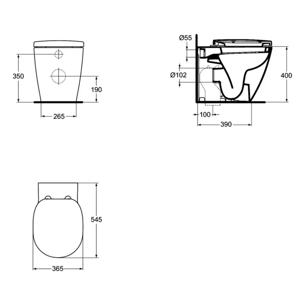 CONNECT Напольный пристенный унитаз-соло, горизонтальный выпуск, с крепежом TT0257919. Дополнительно заказывается сидение и крышка E712701 или E712801 или E772301 или E772401