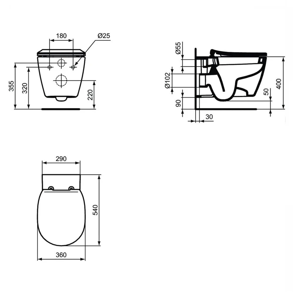 CONNECT Подвесной унитаз с полностью скрытым креплением, глубокий смыв, с крепежом TT0299327 (для полностью скрытого монтажа - без боковых отверстий).