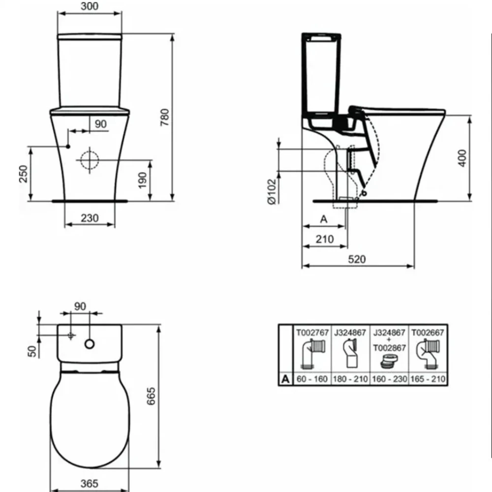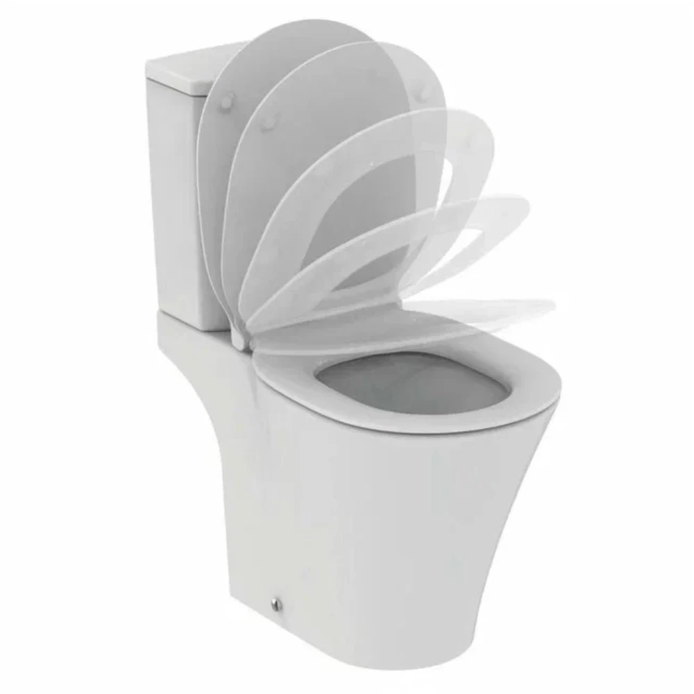 CONNECT AIR AquaBlade Напольный унитаз для монтажа с бачком E073401 или E073901, горизонтальный выпуск (может дополняться пластиковыми выпускными патрубками на 90˚), глубокий смыв, сидение и крышка E036501 или E036601 заказывается дополнительно, с крепежом.