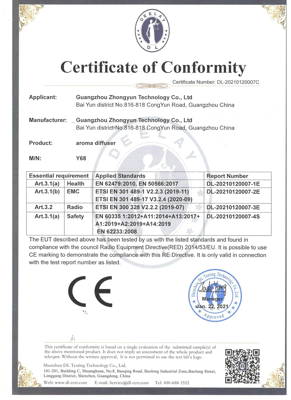 Certificate of conformity