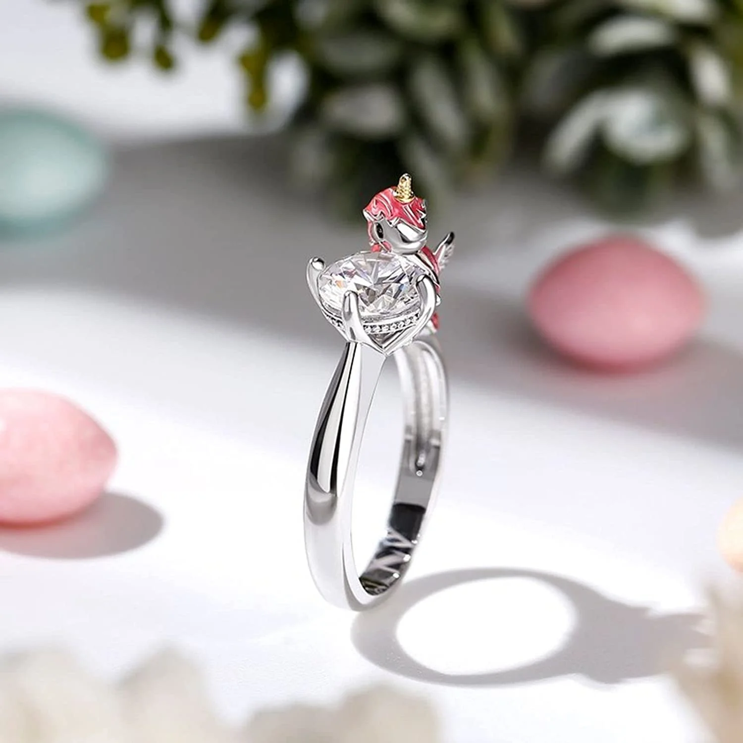 【【Inspiration】: «Dreams Come True» это кольцо в коллекции Hug Me имеет мерцающий круглый камень, обшитый маленьким единорогом. Вдохновленные единорогом вещи могут помочь нам сохранить и взращивать эту часть, вернуть ностальгию от долгих детских дней. Благодаря мечтам и воображению мы верим в лучший мир, даже в то, что мы еще не видели. Обними палец этим милым розовым кольцом в виде единорога. Изготовлено из стерлингового серебра.