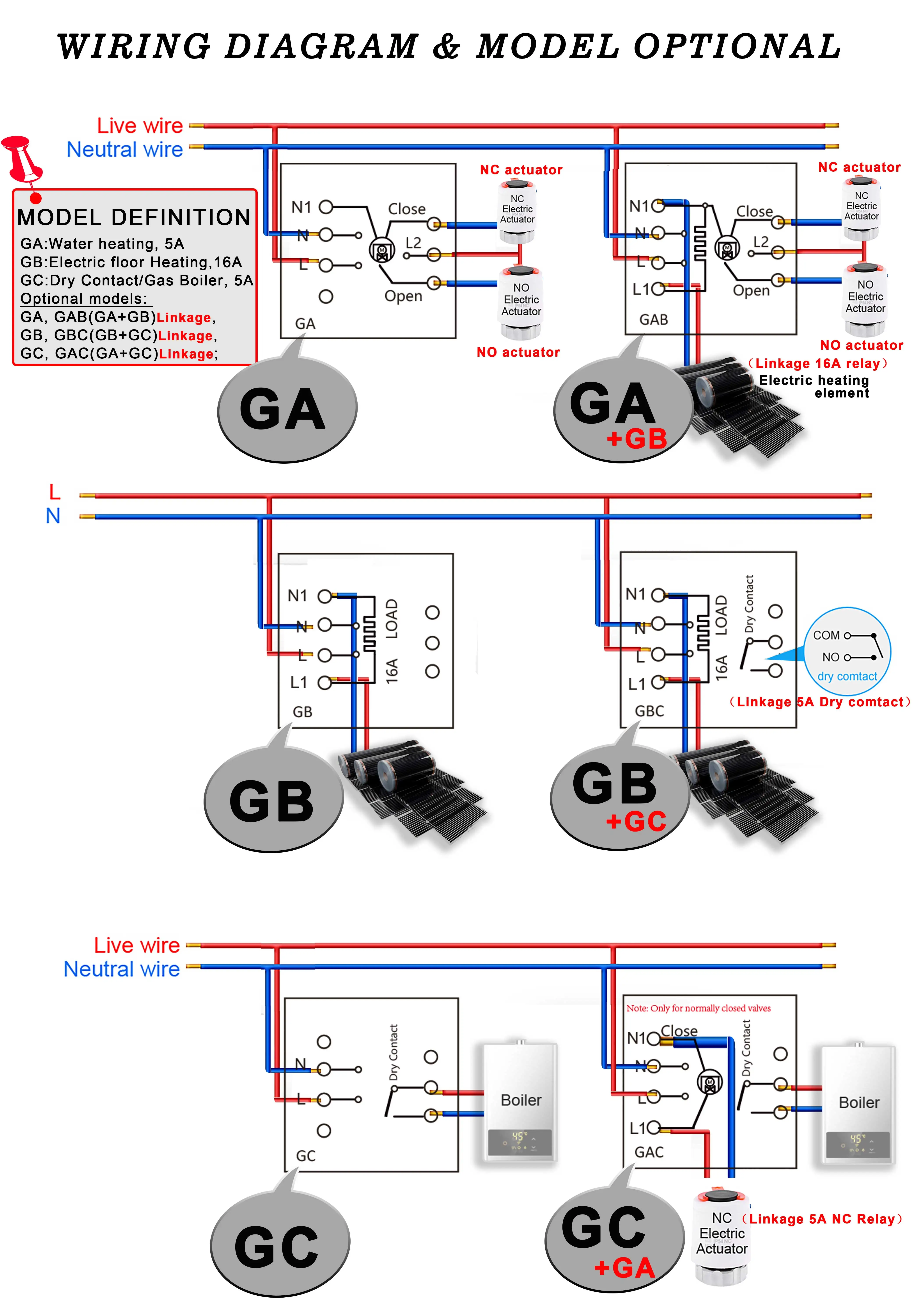 Ток нагрузки: 5AWater heating(GA) /16A электрическое отопление (GB) /5A газовый котел (GC)