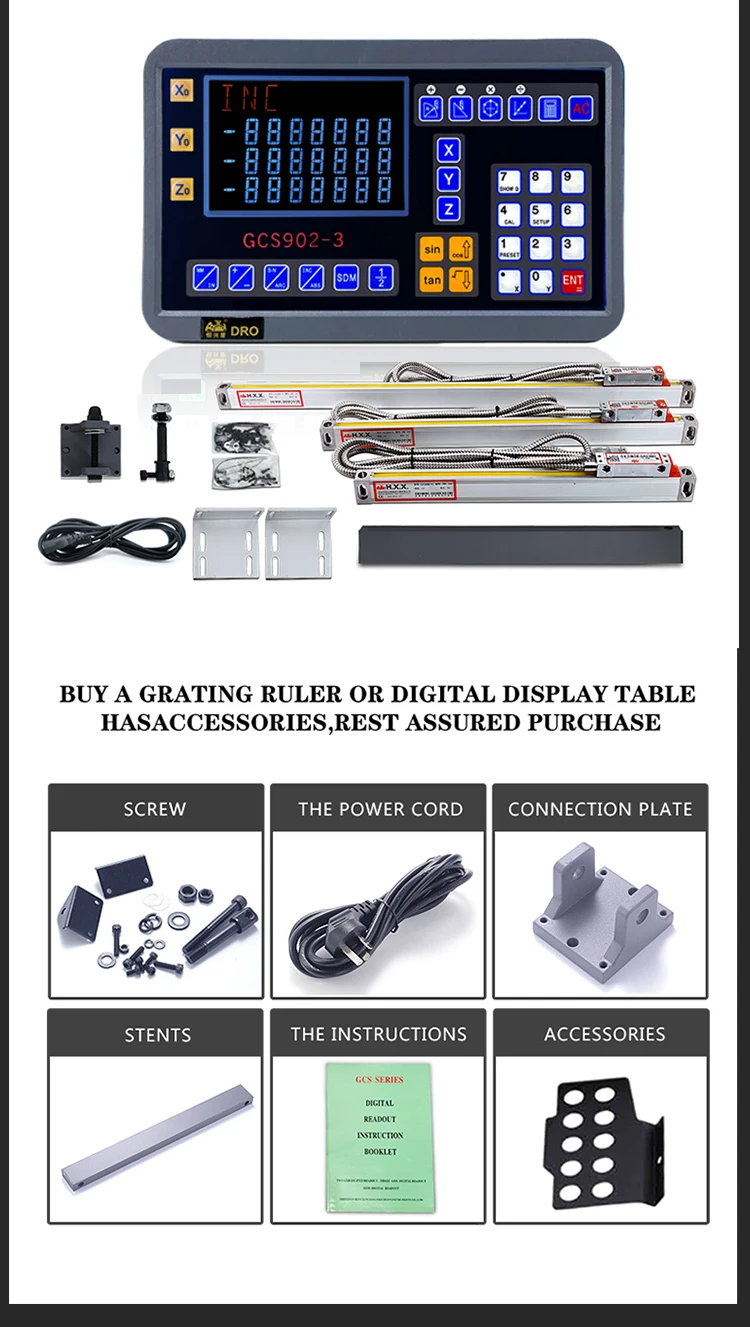 3 оси новый большой ЖК-дисплей Dro набор цифровой индикации Комплект с 3 шт. 5U линейные весы от 50 до 1000 мм для мельницы токарные станки